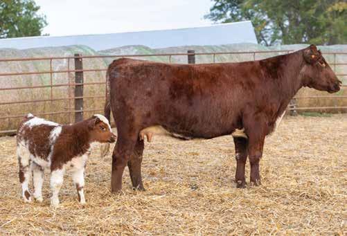 AT THE FARM LAUREL, NEBRASKA :: SUNDAY, NOVEMBER 6TH 29 A roan 2-year-old doing a great job raising her first calf. The Charisma x Hot Commodity cross work well. Breeding Info: Bred to DJS Reloaded L042. Due 3/30/2023.