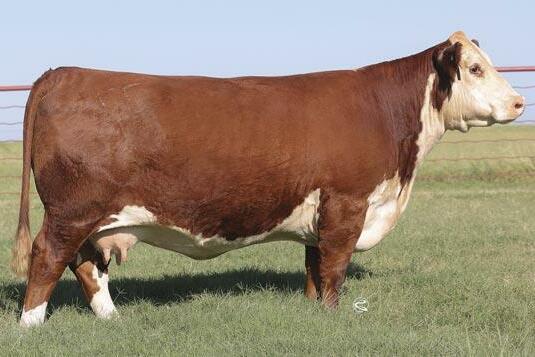 7098 is the outstanding donor dam that was a feature in the inaugural Big League Genetics Sale, topping the sale at $62,500 for onehalf interest to Churchill Cattle Co. This past September, a daughter of 7098 was the featured $170,000 topselling female in the Churchill Cattle Co. sale. 7098 knocks it out of the park for carcass traits, CHB and realworld growth and has made a lasting impact on the breed. Her sons selling as Lots 1 3 are an incredible set of ET full brothers to Birdwell Redbird, a homozygous polled feature in the Select Sires Hereford lineup.