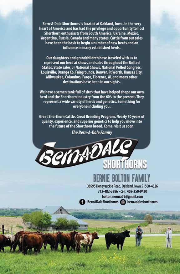 Bern-A-Dale Shortorns Bernie & Norma Bolton 38995 Honey Suckle Rd Oakland, IA 51560 714-482-3386