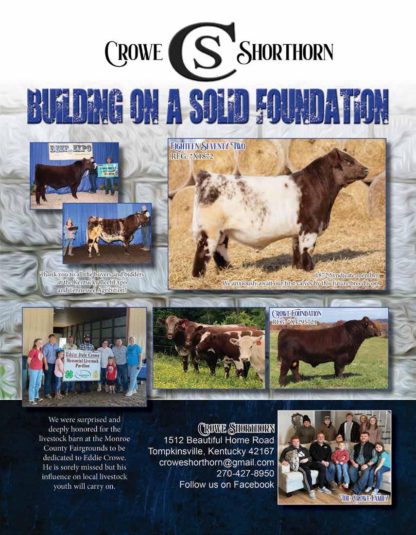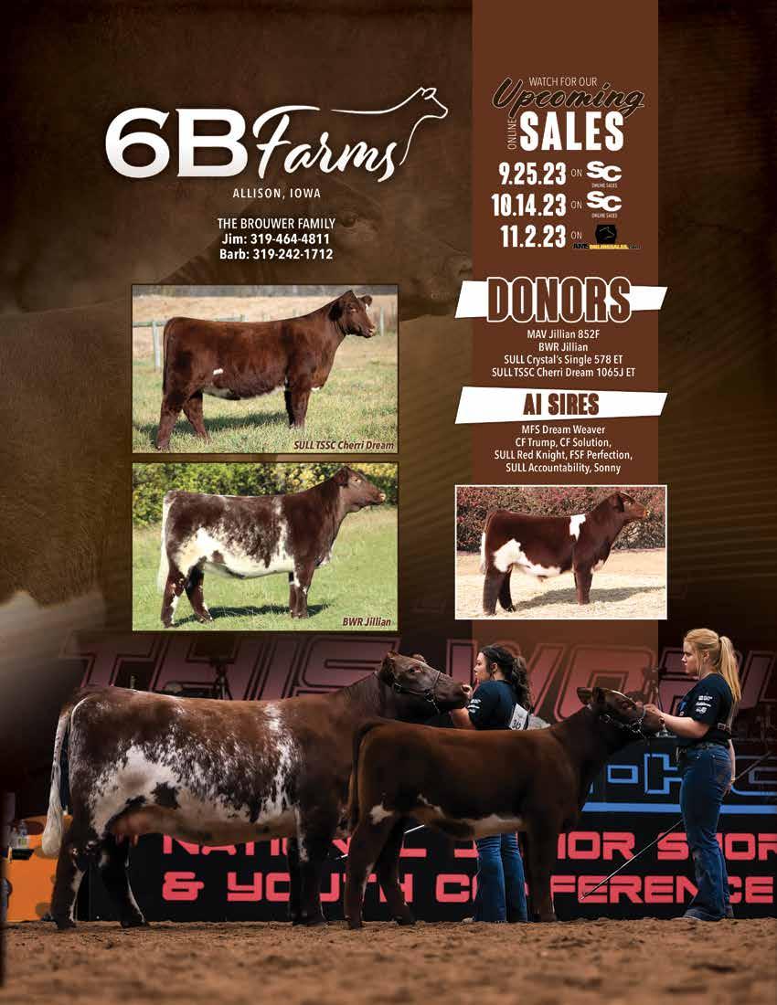 Gilman Shorthorns 6-7 Green Castle Shorthorns 125 Greenhorn Cattle Co 45, 149 Greg Crawford Family 119 GSKI Shorthorns ................................. 99, 149 Hansen Shorthorns 146 Haumont Shorthorns 124, 149 Hi-View Shorthorns, Inc ............................ 149 Highland Farms 76 Hill Farm 67 Hill Haven Shorthorns 30 Hillside Farm 45 Homedale Farms 123 Homeplace Farms 149 Hub Ranch Shorthorns 149 Humble Stock Farm ........................... 122, 149 IL Breeders Unitd For Impact 126-127 IL Shorthorn Association 132 Inness Shorthorns 149 Iowa Shorthorn Association 133 Ippensens Family Shorthorns 149 Iron Rock Ranch 96 James F Bessler LLC 151 Jester Farms ................................................ 149 Jordan Acres 73 Jungels Shorthorn Farm 79-82 Kansas Shorthorn Association 134 Kevin Wendt 151 Key Ridge Shorthorn Farm 149 Keystone International 116 Keystone Shorthorns 98, 149 Knutson Shorthorns ................................... 122 KSS Keystone Shorthorns 72, 149 KW Cattle Co 149 Laban’s Roanoke Farm 149 Lakamp ‘Willow Branch’ Shorthorn Farm 147 Lathrop Livestock Inc. 147 Lazy Bar F Shorthorns 5 Leemon Stock Farm 103 Legacy Ranch ............................................. 149 Leveldale Farms 59, 149 Little Cedar Cattle Co. 149, IBC Lost Diamond B Ranch................................ 28 Loving Farms 23 Maple Brook Farms 94 Mapleton Polled Shorthorns 85 Martindell Farm 51 McCall Show Cattle ........................... 121, 149 McKay Farms 150 McKee Family Shorthorns 150 Merideth Land & Cattle .............................. 77 Meyer Family Shorthorns 35, 150 Meyer Farms 50, 150 MFK Shorthorns 121, 150 Millbrook Farm 41 Missouri Shorthorn Association 128-129 Moore Shorthorns 56 MTS Shorthorns 147 Narrow Brook Shorthorns .................. 120, 150 Nebraska Shorthorn Association 135 Nelson Farms 60 Norman/Ripberger Shorthorns 148 Oakview Shorthorns 75 OH Shorthorn Breeders Association 18-19 Oklahoma Shorthorn Association 89 Oler Farm 100, 150 Paint Valley Farms ....................................... BC Peak View Ranch 20 Pearl Valley Shorthorns 78 Pine Manor Farm 104 Raedawn Genetics 95 RC Show Cattle 146 Recip Solutions 110 Respite Farm 31 Richardson Farms Shorthorns .................... 150 Robjoy Shorthorns 150 Robsten Shorthorns 147 Rockin’ G Land & Cattle 33, 150 Rocky Branch Shorthorns 120, 150 Ron Alden 117 Schrag|Nikkel Cattle 3 Sears Marketing Services 136, 151 Shadeland Farm.......................................... 150 Shadybrook Farm 5 Sharben Shorthorns 52, 150 Shorthorn Foundation................................ 108 Six Shorthorns 106 Smith Family Farms 55, 150 Smoky Mountain Farm 146, 150 South Starr Farms 118 Sprys Shorthorns 21 Stangl Shorthorns 86, 150 Stecks Cattle 12-13 Stepping Stone Ranch ................................ 105 Stone Springs Shorthorns 150, 157 Sullivan Supply 151 Sutherland Shorthorns 151 Tadmore Farms 61 Texas Shorthorn Association 130-131 Triple R Shorthorns .................................... 147 Turner Family Shorthorns 151 Turner Shorthorns 156 Twin Oak Farms......................................... 107 Utterback Show Cattle 151 Warner Ranch 151 Waukaru Shorthorns 57, 151 White Birch Farm 44 WHR Shorthorns 15 Wilson Livestock Agency 151 Woodrange Farm 151 WZ Polled Shorthorns ............................... 101 Yokeley Farms 147 shorthorn country • july 2023 157