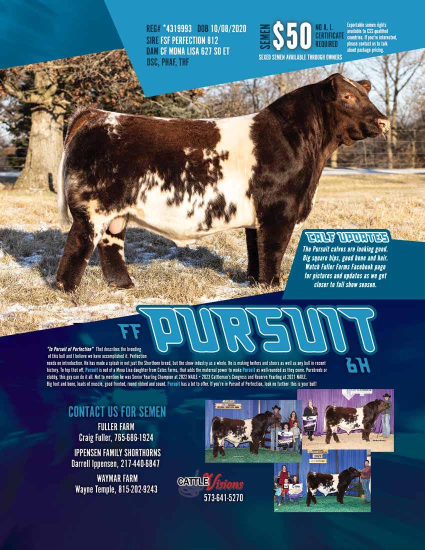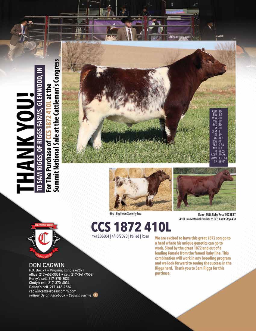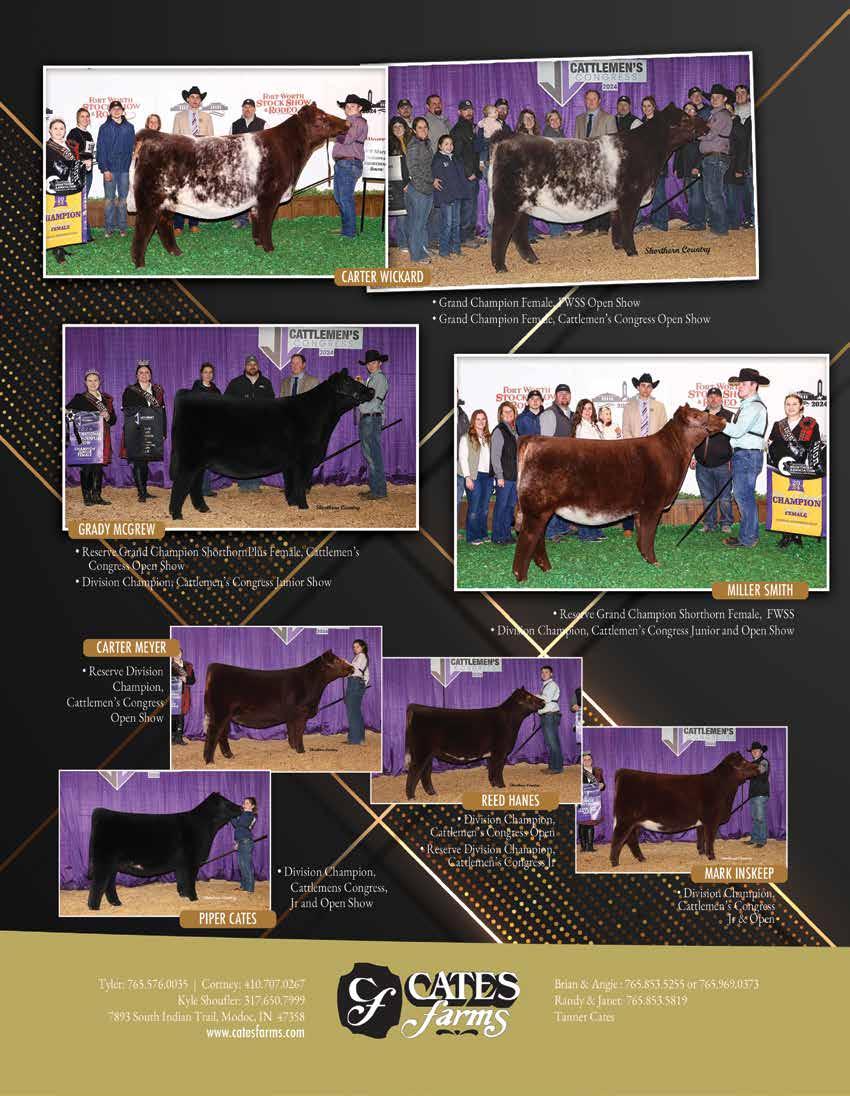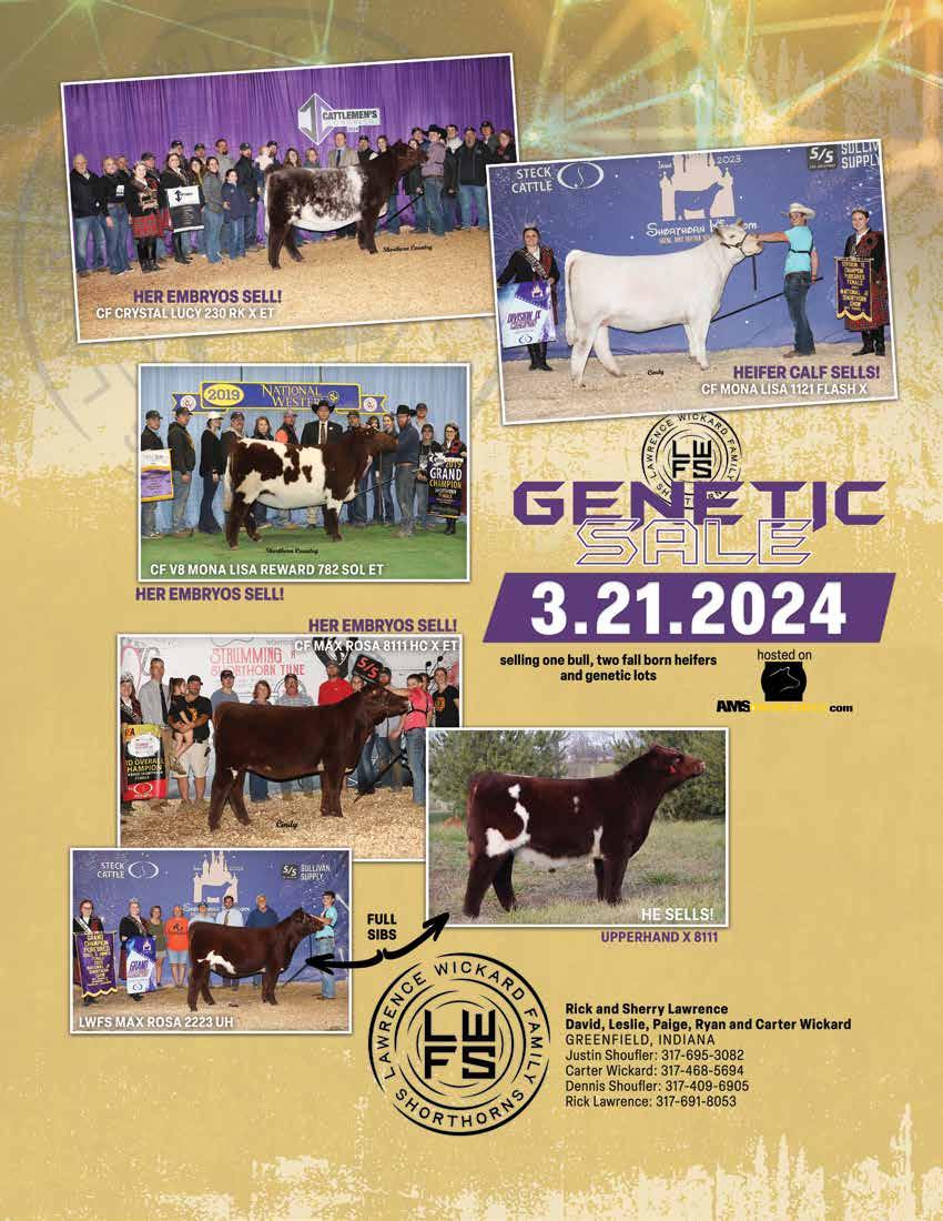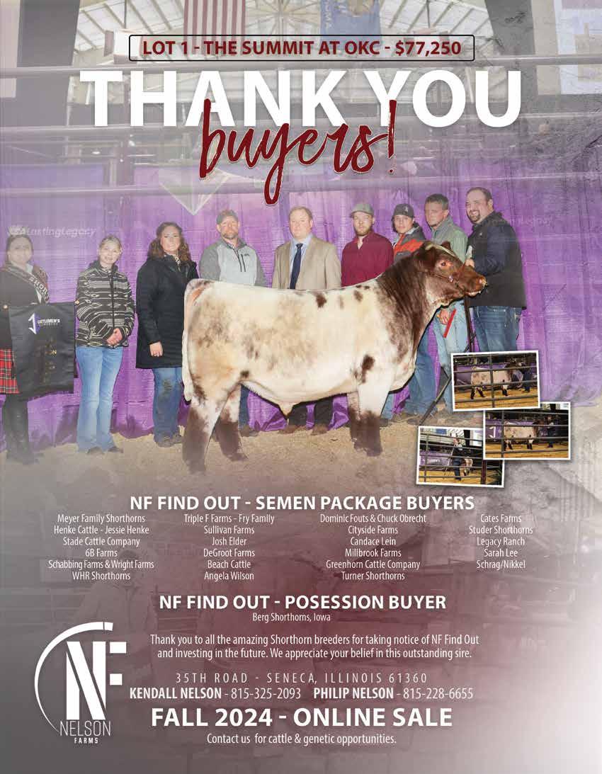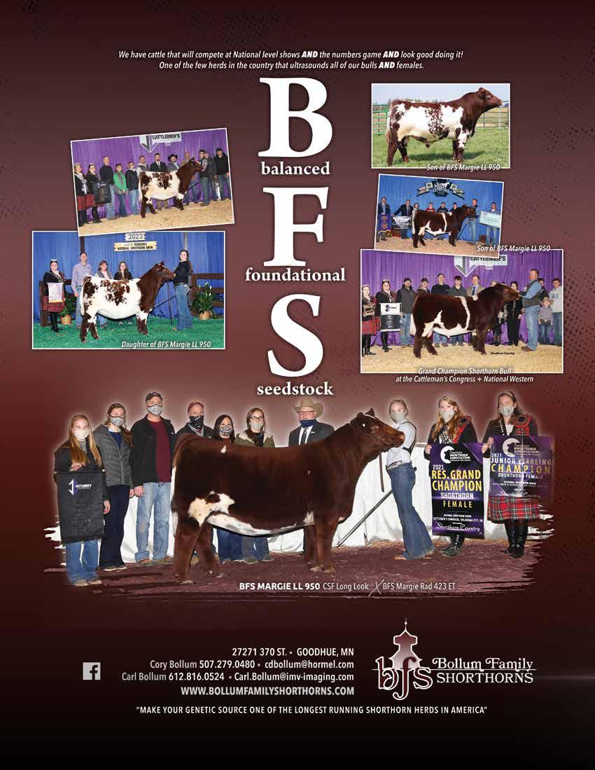 AAA Shorthorns 90 Aegerter Cattle Co .......................... 9 Aegerter Marketing Services, Inc ... 95 Bell M Farms 65 Bennett Land & Cattle 90 Berg Shorthorns 90 Bigelow Farms ............................... 90 Bollum Family Shorthorns ....... 10-11 Bowman Superior Genetics 90 Bye Well Shorthorns 90 Byland Polled Shorthorns 90 Cagwin Cattle Services LLC .......... 93 Cagwin Farms ................... 15, 29, 38 Cairns Shorthorns 90 Carney Cattle Ranch 27 Cates Farms ............................ 6-7, 90 Cattle Visions .......................... 93, 94 Cornerstone Farms 90 Crawfdown Farms 90 DAP Cattle Company 15 Dedmon Shorthorns ..................... 90 DJS Shorthorns ............................. 90 Double C Shorthorns 90 Dreamy 280 Cattle Company 90 DTR Cattle Co. 90 Duis Farms .................................... 90 Fickbohm Farms ........................... 90 Fieser’s Polled Shorthorns 91 First Class Cattle Marketing Ltd 93 Fuller Farm ................................... 32 GEN II Cattle Farms..................... 33 Greenhorn Cattle Co............... 13, 91 GSKI Shorthorns 91 Haumont Shorthorns 91 Heart of the Prairie Sale................. 22 Hill Haven Shorthorns .................. 35 Homeplace Farms 91 Humble Stock Farm 91 Inness Shorthorns 91 Iowa Shorthorn Association........... 14 Ippensen Family Shorthorns .......... 32 James F Bessler LLC 93 Jester Farms 91 Jungels Shorthorn Farm IFC Kevin Wendt ................................. 93 Key Ridge Shorthorn Farm............ 91 Keystone Shorthorns 91 Kohlstaedt Farms 84 KSS Keystone Shorthorns.............. 91 KW Cattle Co ............................... 91 Laban’s Roanoke Farm 91 Lawrence Wickard Family Shorthorns 23 Leemon Cattle Company 15 Leemon Stock Farm ...................... 15 Legacy Ranch ................................ 91 Leveldale Farms 91 Little Cedar Cattle Co. 91 Little Cedar Mgmt 98 McCall Show Cattle ...................... 91 McKay Farms ................................ 92 McKee Family Shorthorns 92 Meyer Family Shorthorns 92 Meyer Farms ................................. 92 MFK Shorthorns ........................... 92 Moore Shorthorns ......................... 83 Narrow Brook Shorthorns 92 Nelson Farms 39 Norman/Ripberger Shorthorns ...... 92 Oklahoma Spring Selection Sale .... 26 Oler Farm 92 Paint Valley Farms BC Peak View Ranch 19 Red Dirt Treasures ......................... 25 Revival Sale ................................. IBC Richardson Farms 92 Robjoy Shorthorns 92 Rockin’ G Land & Cattle 92 Rocky Branch Shorthorns ............. 92 Saskvalley Stock Farm.................... 65 Schrag|Nikkel Cattle 3 Scott Bayerl Family Farm 92 Sears Marketing Services, LLC ...... 93 Shadeland Farm............................. 92 SharBen Shorthorns 92 Smith Family Farms 92 Smoky Mountain Farm and Ranch 92 Stangl Shorthorns .......................... 93 Stone Springs Shorthorns .............. 93 Stuart Wilson Consulting 93 Sugarbird Shorthorns 37, 93 Sullivan Supply 93 Sutherland Shorthorns .................. 93 Turner Family Shorthorns ............. 93 Utterback Show Cattle 93 Warner Ranch 93 Waukaru Shorthorns ............... 93, 96 Waymar Farms ........................ 32, 84 WHR Shorthorns ............................ 5