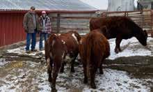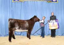 Cary Gilman and Khloee Cannon with the Shorthorn Heifers.