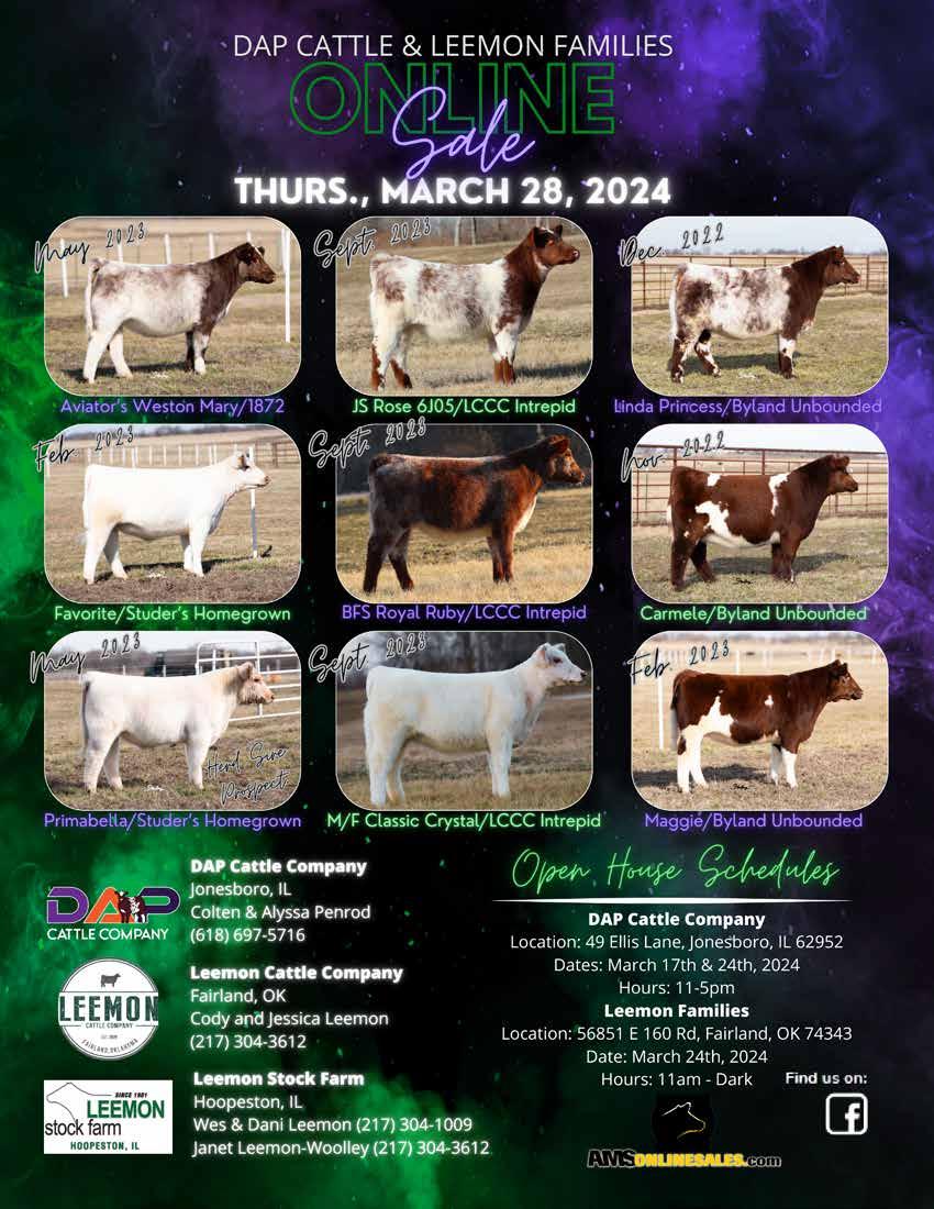 March 28 - Leemon Cattle Co, Fairland, Okla., Leemon Stock Farm, Hoopeston, Ill., & DAP Cattle Co, Jonesboro, Ill., Online Sale, amsonlinesales.com