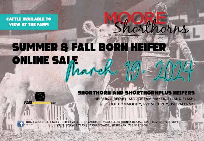 March 19 - Moore Shorthorns Fall and Summer Born Show Heifer Sale, Jerseyville, IL, amsonlinesales.com