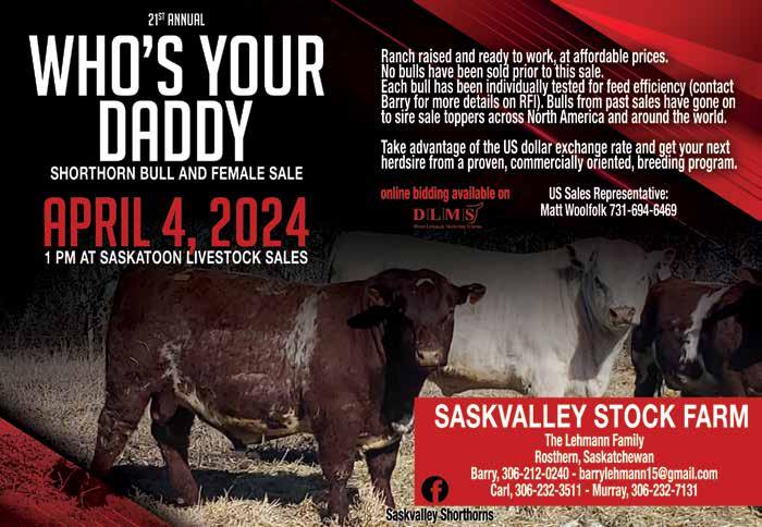 April 4 - 21st Annual “Who’s Your Daddy” Shorthorn Bull & Female Sale, Saskatoon, Saskatchewan, Can.