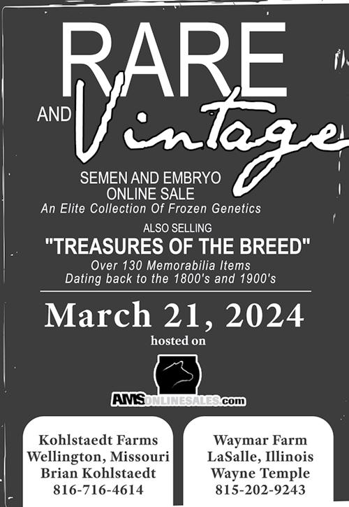 March 21 - Kohlstaedt Farms and Waymar Farms “Rare and Vintage” Online Genetic Sale, amsonlinesales.com