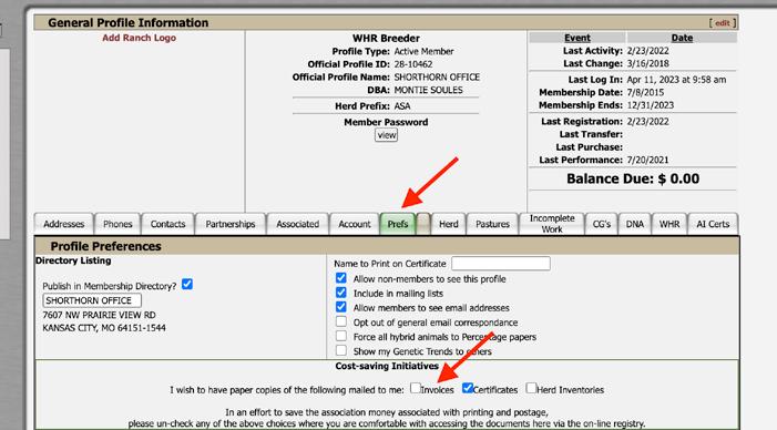 In an effort to reduce the amount of paper sent out of the office, statements will now be emailed, rather than printed. Please be sure to double-check that you have a correct email on file in the registry. If you wish to continue with the printed version, simply log into your DigitalBeef account and go to the ‘Prefs’ tab to update your Invoicing preference (see screenshot). You can also call the office to make the switch.