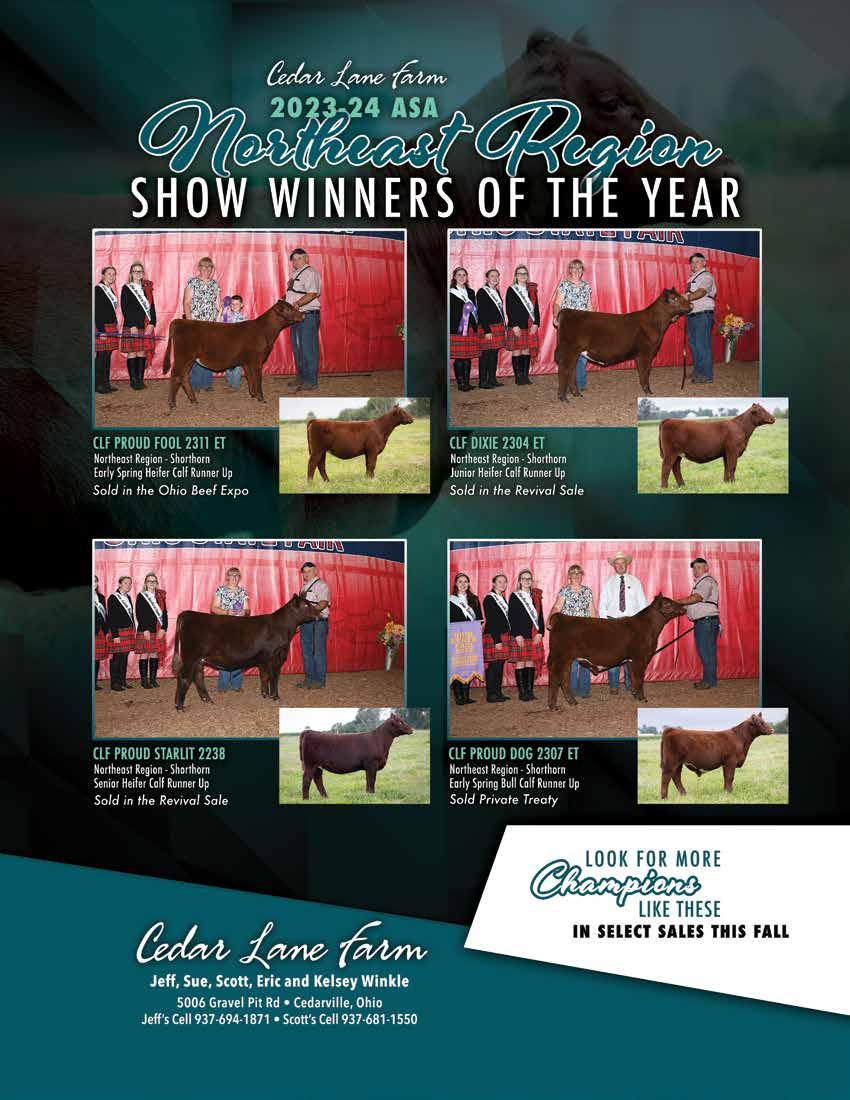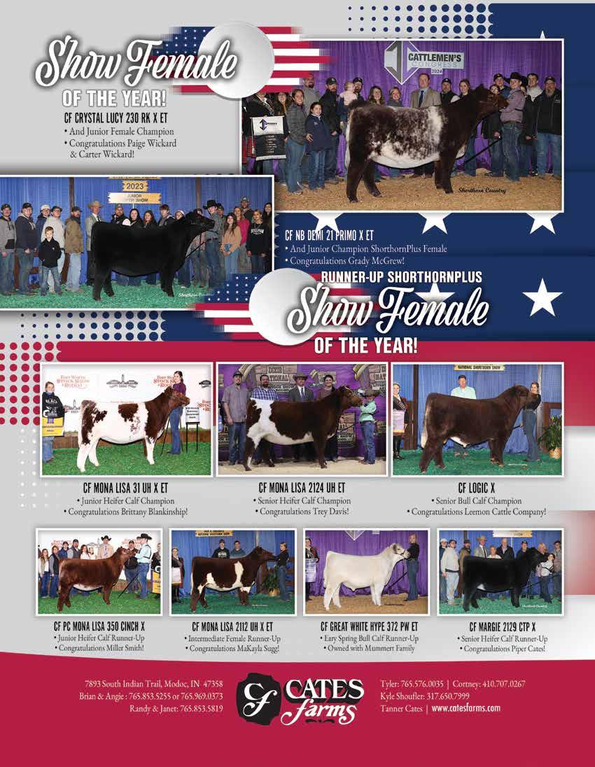 We will gather in Timonium, Maryland for the 2024 National Junior Shorthorn Show and Youth Conference June 15-22. This is our largest event each year and we anticipate another great show with lots of contest participation. Over 1,000 awards will be awarded to Shorthorn Junior Members. I invite everyone to Maryland for some great Shorthorn Fellowship and to take advantage of the interesting and historic sites in this part of our great country.