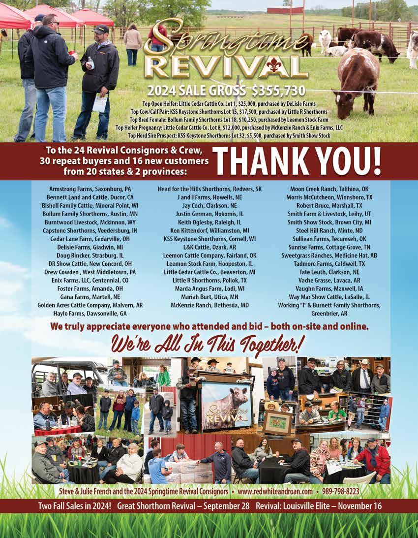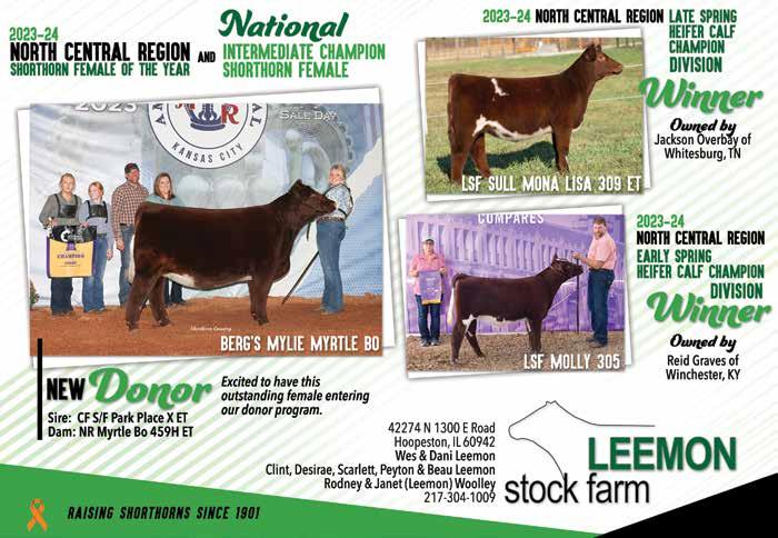 the age limits of the AJSA (early bird registration deadline is July 1, 2024). After this date, a late registration fee of $300 for adults and $200 for Juniors will apply. Registration includes three meals and all bus transportation to and from the Stockyards and special event tours. You can fly or drive to Lexington, and everything is taken care of once there. Registration forms and a link to the hotel can be found on the Shorthorn website, shorthorn. org. To ensure your comfort during the event, make hotel reservations early. The Embassy Suites is offering a special Shorthorn Block price. Please look at the Symposium program schedule on Page 22 in this issue for more details.