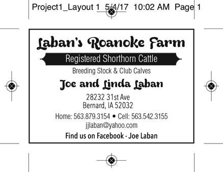 With that note, it’s the time of the year to update each State Associations Board of Directors. We list the President and Vice President of each state on our website. This is a useful tool for new and old members to use to find ways to get involved and communicate with fellow breeders leading their state association. If you are a new state association director or a past director with updated information, please email wade@ shorthorn.org with that information and we will get it updated. State Associations Board of Directors are currently being contacted for updated information. A roster of updated state association board of directors will be listed in the July issue of the Shorthorn Country Magazine.