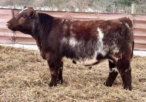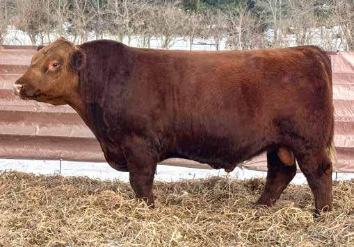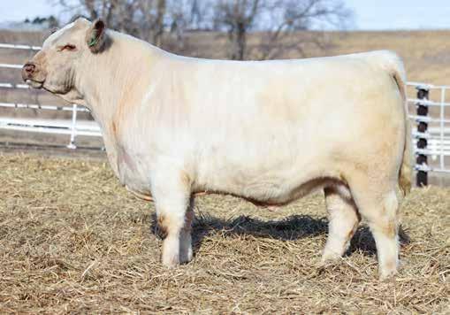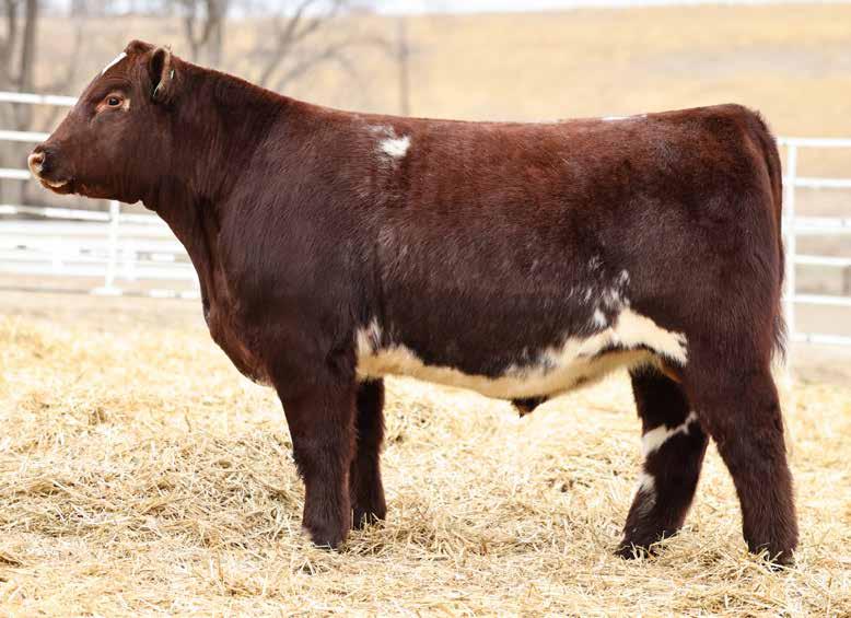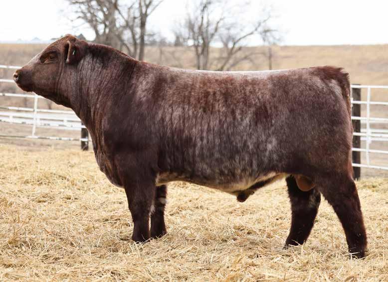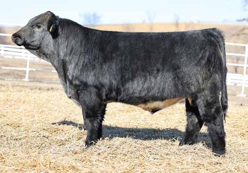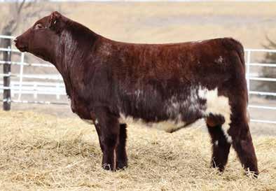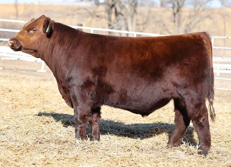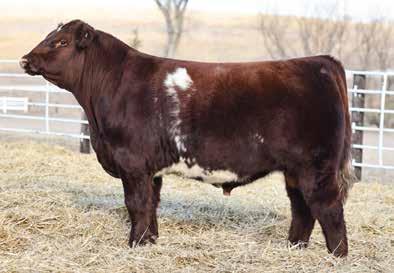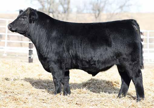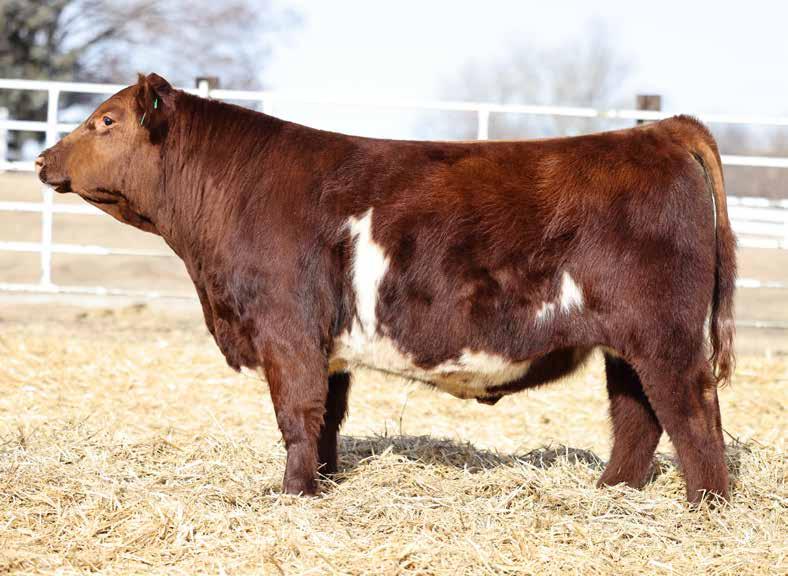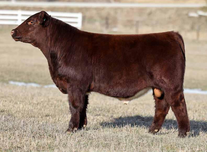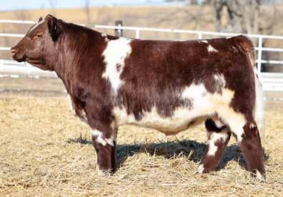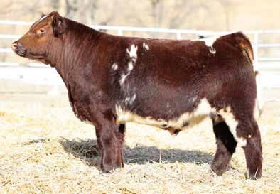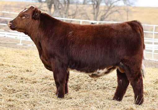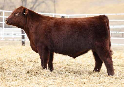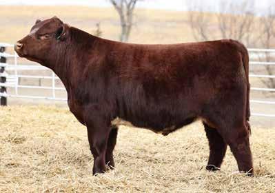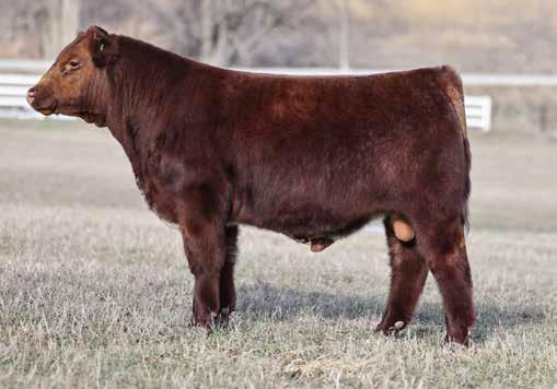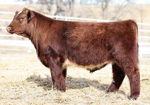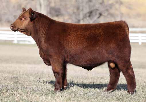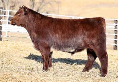 in the offering. Yet he’s balanced with calving ease and growth. Makes sense with his mother who is a top female from Bert Moore’s herd that we were able to acquire. This guy can walk in anyone’s pasture and impress.