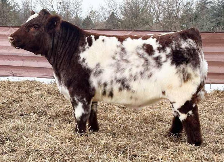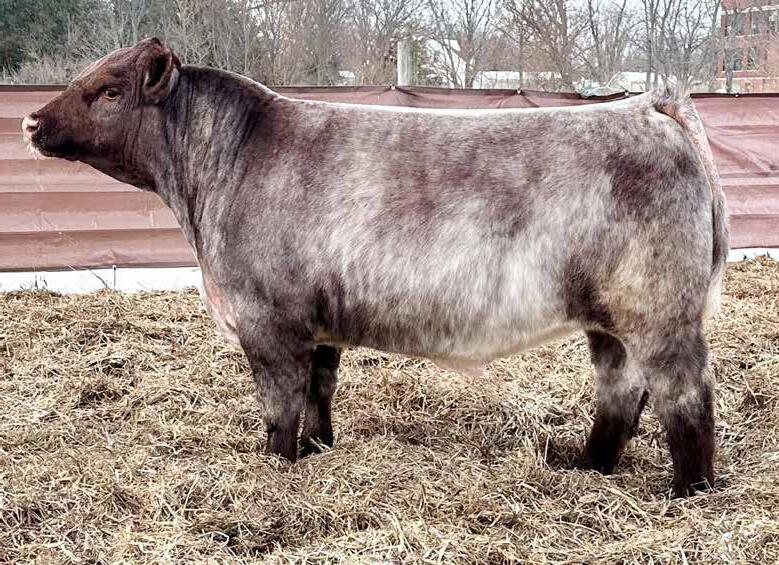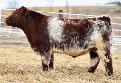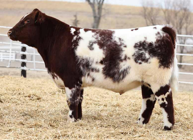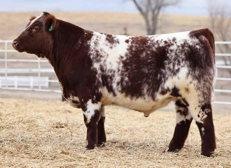 of his old man in a homo polled, heifer safe, and dirty roan package. Built like a herd bull, he’s perfect from the ground up, sappy middled, and masculine from nose to tail. The topside of his pedigree is virtually a who’s who of commercially accepted Shorthorn genetics, but his phenotype tells you he can hunt. If you need power and profitability, get you a Freight Train.