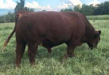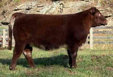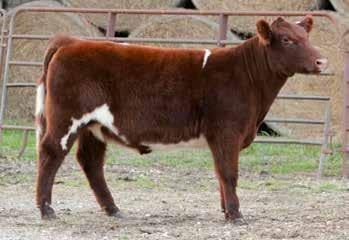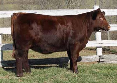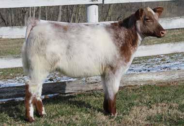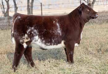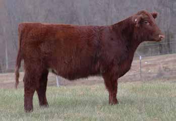 has been an excellent addition to our herd. This heifer’s sire is massive yet easy calving. Their mating resulted in this dark cherry red masterpiece. Take her home and let her paint a picture in your herd.