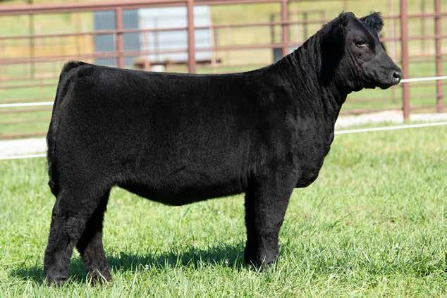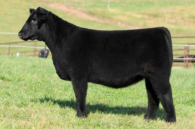 • This stout Angus female brings the kind of look that stops you in your tracks — long-necked, stout-pinned, and equipped with the running gear to get it done in the ring and in production.
