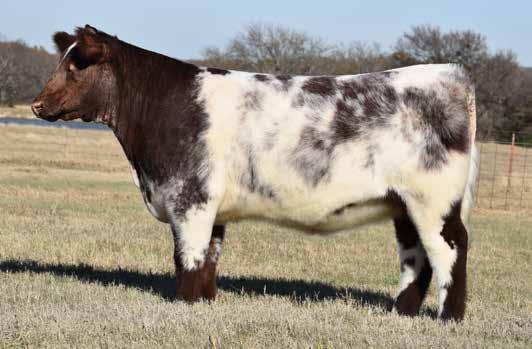 WHR CCCC Queens 5021 is an outstanding ShorthornPlus show heifer prospect. Her pedigree insures her quality. Being out of a Sonny daughter of Little Cedar Ten Queens puts her in a long line of Shorthorn royalty. Her dam - WHR Queen of Sonny 7N15 - was a State Fair of Texas Open Show Champion Female in 2018 for the Norris Family. This heifer will be fun to show and devlop.