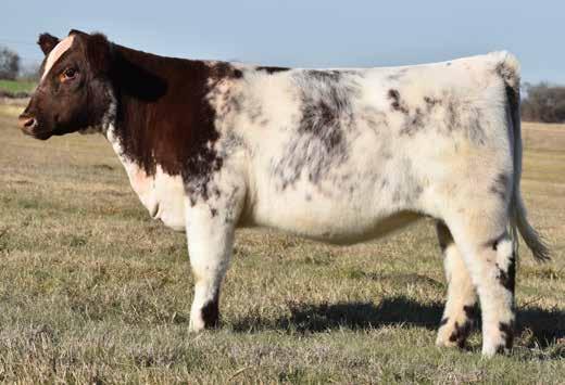 WHR HS Miss Montana 5905 is the daughter of a very successful show heifer that developed into a very productive Donor Cow. 5905 is a maternal sister to the 2022 Grand Champion Shorthorn Female at the Fort Worth Junior show. Miss Montana 5905 gives you the look required in today's show ring. Her roan color, smooth pattern and exceptional overall design will catch your attention!