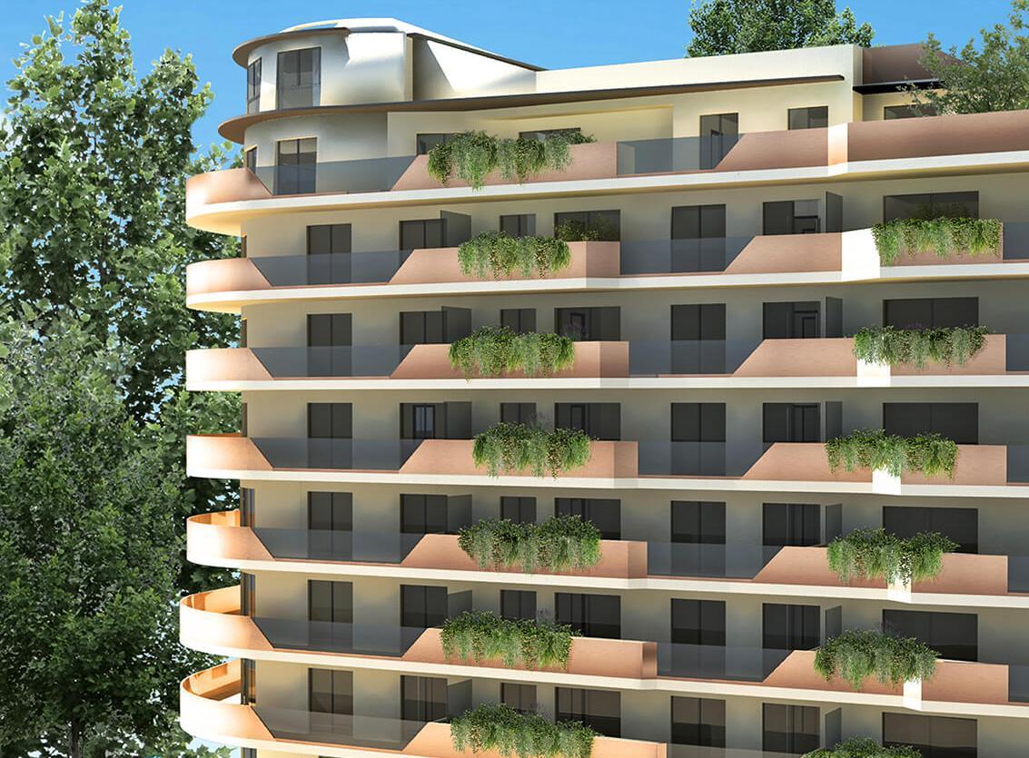 La sceltadelle finiture di pregio e l’inserimento del verde, estesoanche sui terrazzi, garantisconoarmonia con il contestostoriconaturalisticodel Baluardo, richiamatodalle linee sinuosedelle facciate.