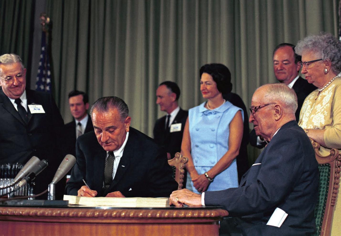 1965: Legislation creating Medicare as well as Medicaid (health care services for certain low-income people and others) passes both houses of Congress by a vote of 70-24 in the Senate and 307-116 in the House. President Johnson signs the Medicare bill into law on July 30 as part of the Social Security Amendments of 1965.
