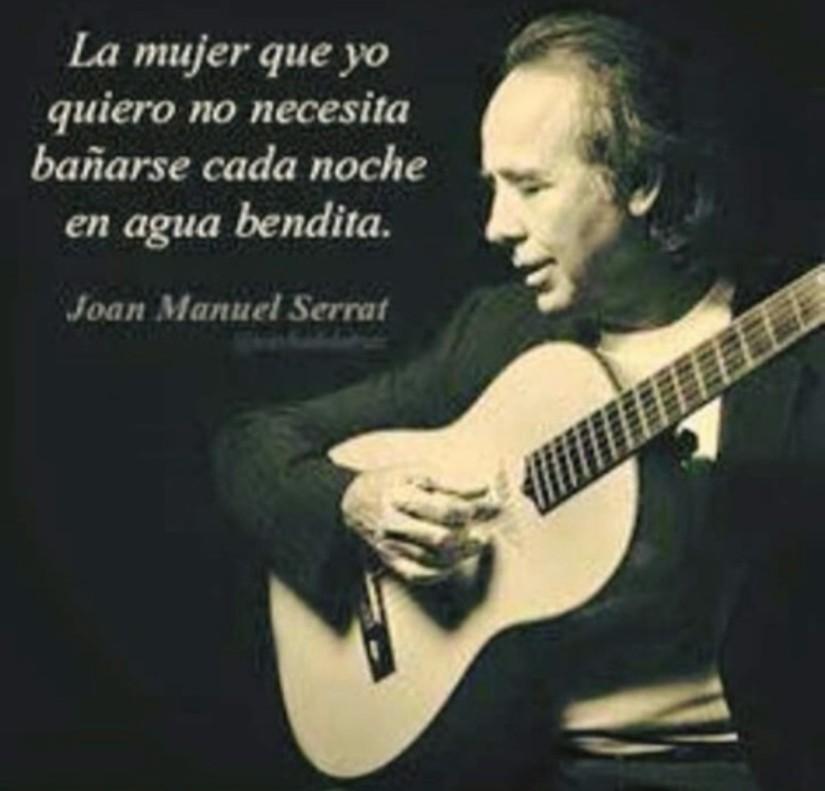Joan Manuel Serrat Teresa (Barcelona; 27 de diciembre de 1943) es un cantautor, compositor, actor, escritor, poeta y guitarrista español. Premiado con la Gran Cruz de la Orden Civil de Alfonso X el Sabio por su brillante carrera y su contribución a la cultura y el arte español. A pesar de que inicialmente cantaba exclusivamente en catalán, ha grabado álbumes en varios idiomas, incluyendo español, inglés, francés e italiano, lo que le ha valido el reconocimiento internacional.
