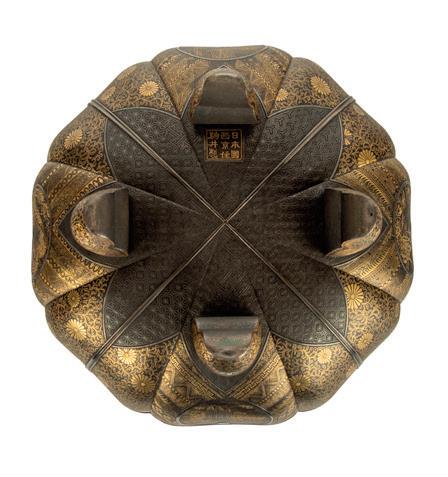 Sugiura Yukimune (1856-1901) worked for the First Trading and Manufacturing Company founded in 1873 by the Meiji government under the stewardship of lead artist and designer Suzuki Chokichi, he worked alongside his older brother Sugiura Yukinari, his dates unknown. They both exhibited at the Paris Exposition of 1900, Yukimune eventually became a lecturer in metalwork at the Tokyo School of Art until his untimely death in 1901 aged 43.