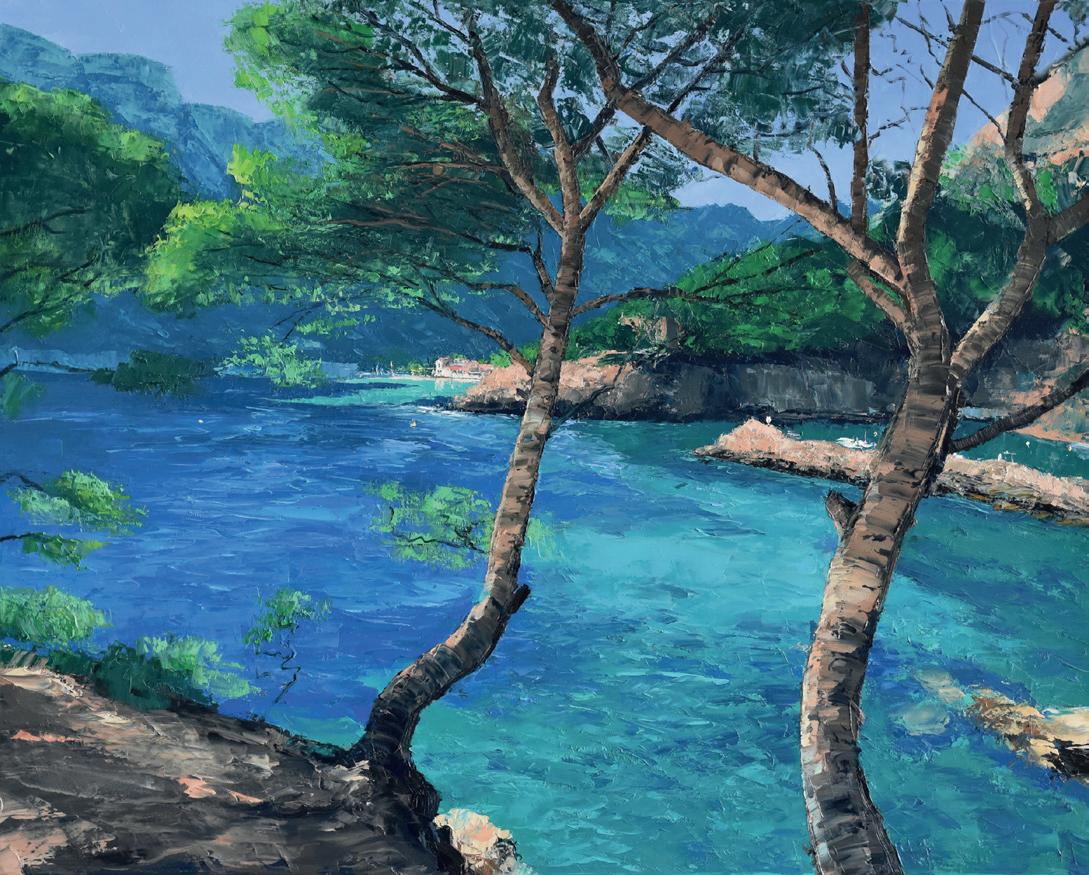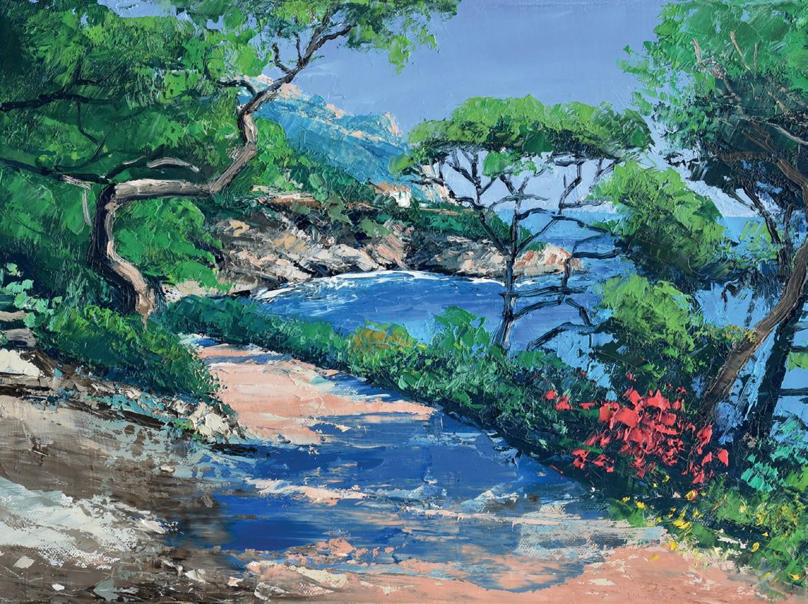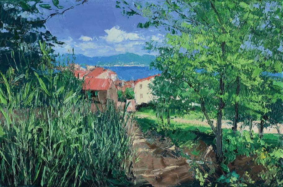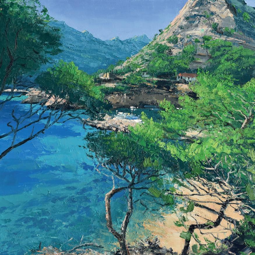 Whether depicting coastal paths, mediterranean pines or quiet harbours, his work seeks to convey the essence of being present in a landscape — the warmth of the sun, the movement of air, and the ever-changing character of nature.