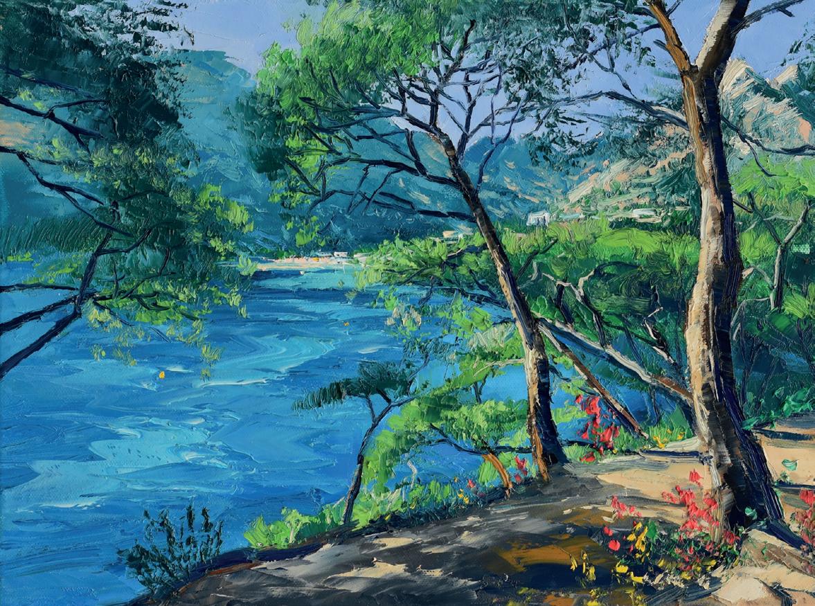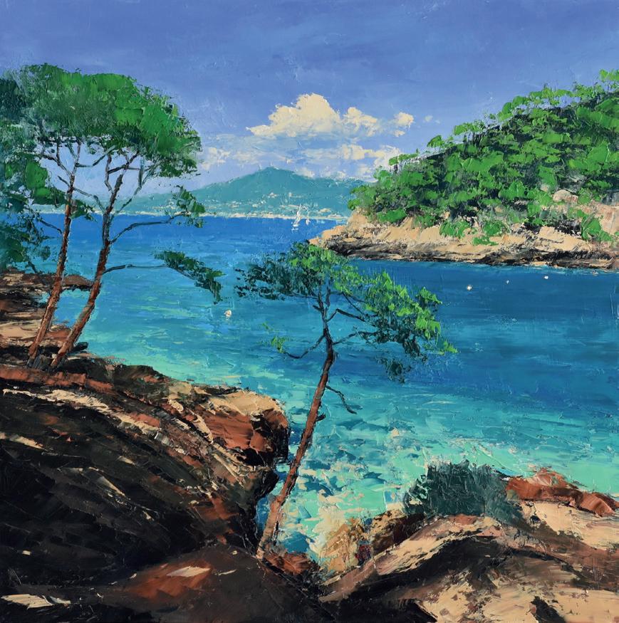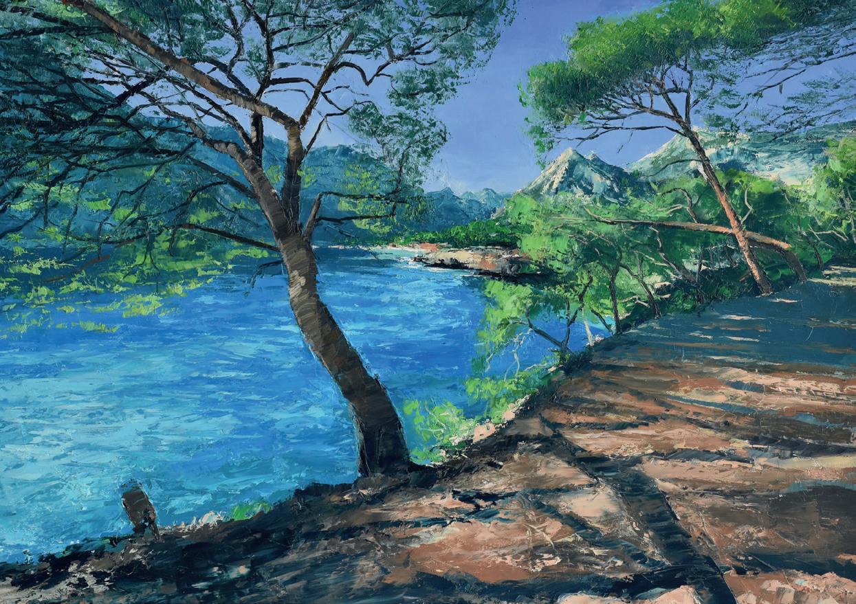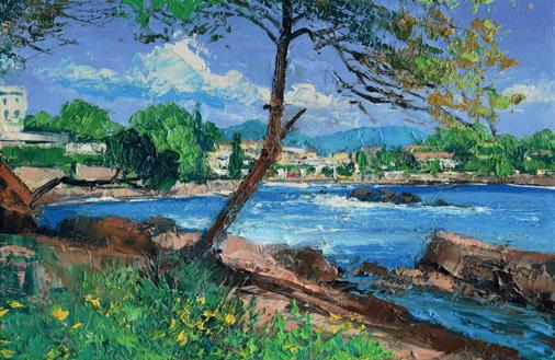 Whether depicting coastal paths, mediterranean pines or quiet harbours, his work seeks to convey the essence of being present in a landscape — the warmth of the sun, the movement of air, and the ever-changing character of nature.