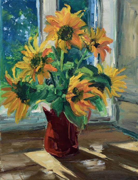 Breathing in the morning sun oil on board · 24 x 24 in.