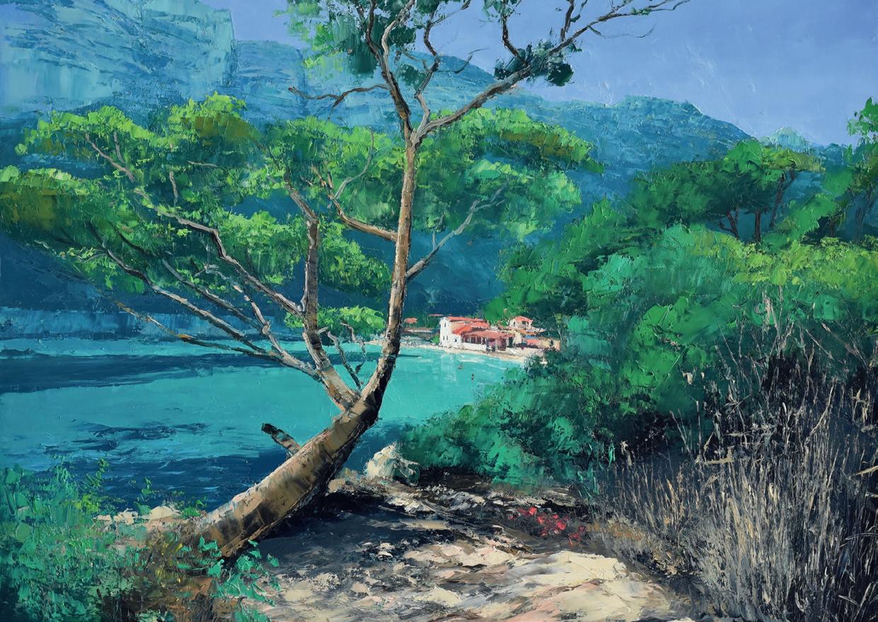 Leaning pine, Calanque De Sormiou oil on canvas · 24 x 32 in.