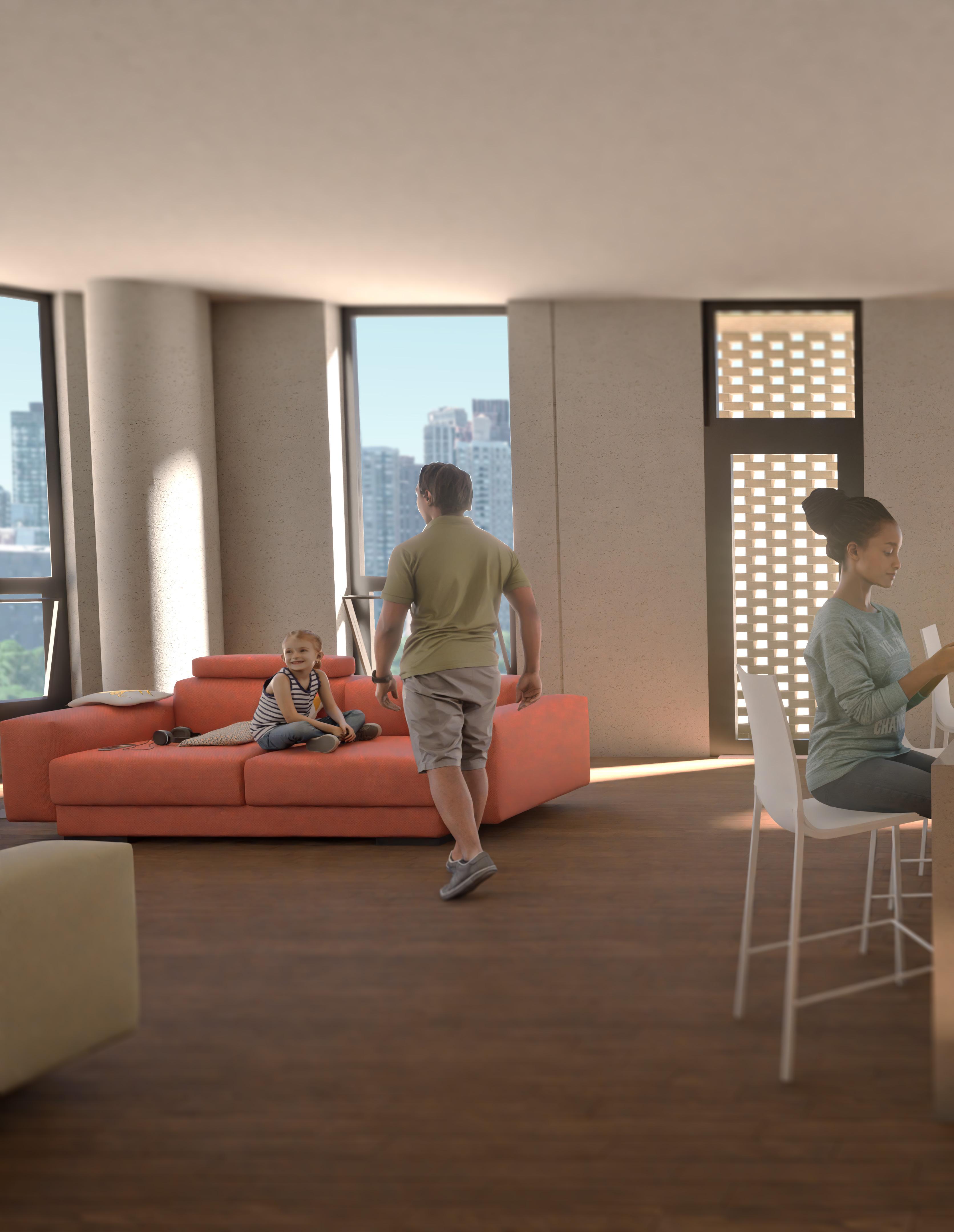 Collectivo is a 17-story tall building that provides a needed middle-ground solution for New York City: affordable housing. Affordable housing in New York City is defined as housing for households spending no more than 1/3 of their income on rent and utilities. Both the NYC Housing Preservation & Development and the NYC Housing Development Corporation are driving development, establishing more affordable housing in New York City. The NYC Housing Authority (NYCHA) as the largest public housing in the United States is a partner agency to our project. Our project is designed within city zoning and housing guidelines to provide residents of East Harlem with this middle-ground solution. An attractive variety of unit types, communal living spaces, and the project’s location provide a link for the community. Collectivo provides the start to affordable housing for East Harlem’s residents, in a world with ever-increasing demand for affordable housing with quality construction. Our project is a celebration of this type of housing for the whole of East Harlem.