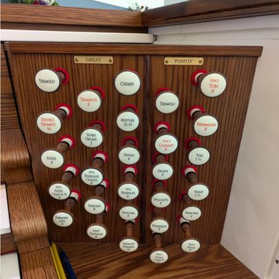 •SwellandPedaldivisions:NewdigitalstopsontheSwellincludetheLieblichGedackt,Geigen Prinzipal,Oktav,Trompette,Oboe,VoxHumanaandClairon.