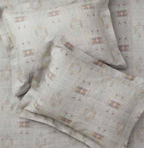 A . Amethyst Burdock Kilim Pillow, $145-$225 . Ombré Orchid Pillow, $225 C . Ombré Fog Coasters, $38 D . Iris Cactus Silk Linen Bedding, $95-$575 E . White Linen Kantha Quilt, $395-$555 F . Bright Botanical Suzani Vanity Tray, $255 G . Terracotta Classic Kuba Cloth Pillow, $125-$255 H . Ombré Mauve Pillow, $225 I . Ombré Pink Coasters, $38 J . Fuchsia Daisy Suzani Bedding, $95-$450 K . Blush Linen Kantha Quilt, $395$555 L . Speckled Indigo Large Tray, $585 M . Teal Vines Suzani Pillow, $145-$265 N . Ombré Teal Pillow, $225 O . Ombré Green Coasters, $38 P . Light Teal Vines Suzani Bedding, $95-$450 Q . Chambray Linen Kantha Quilt, $395-$555 R . Teal Vines Suzani Vanity Tray, $255