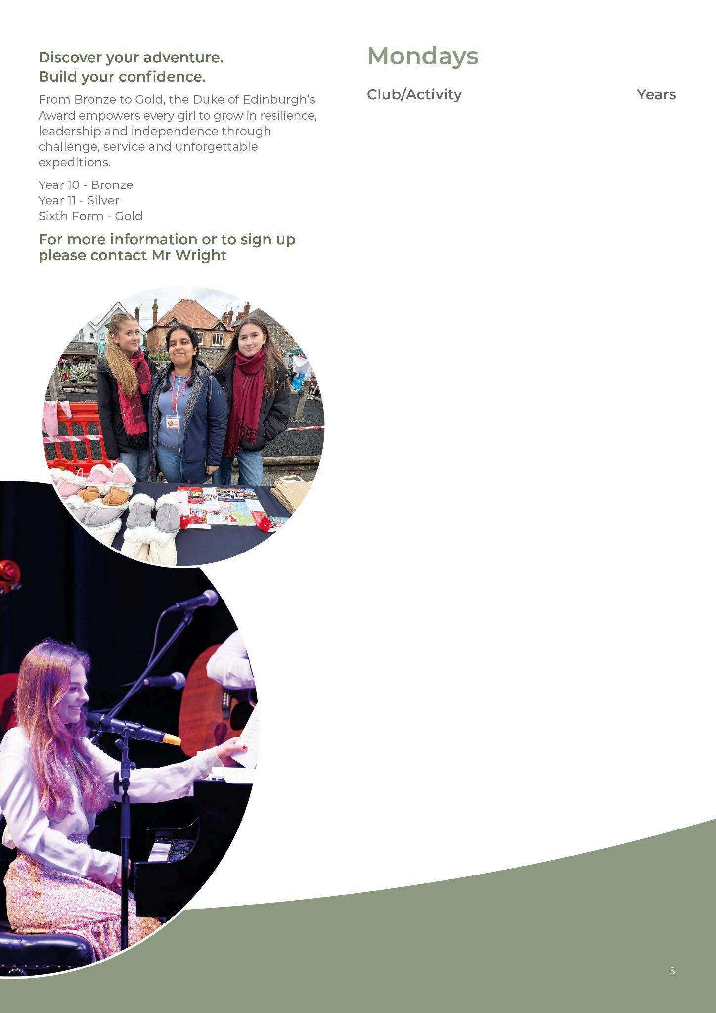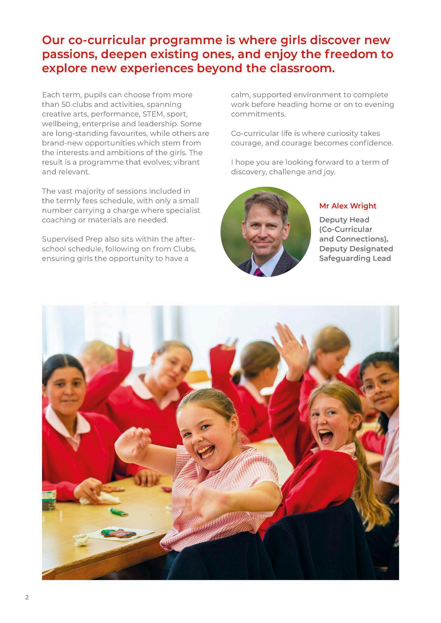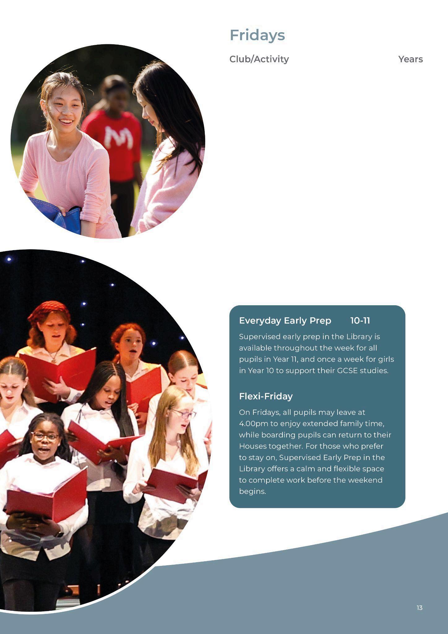 Our Clubs & Activities Programme runs Monday to Friday throughout the year Weekend Activities fall into the boarding provision and are communicated here