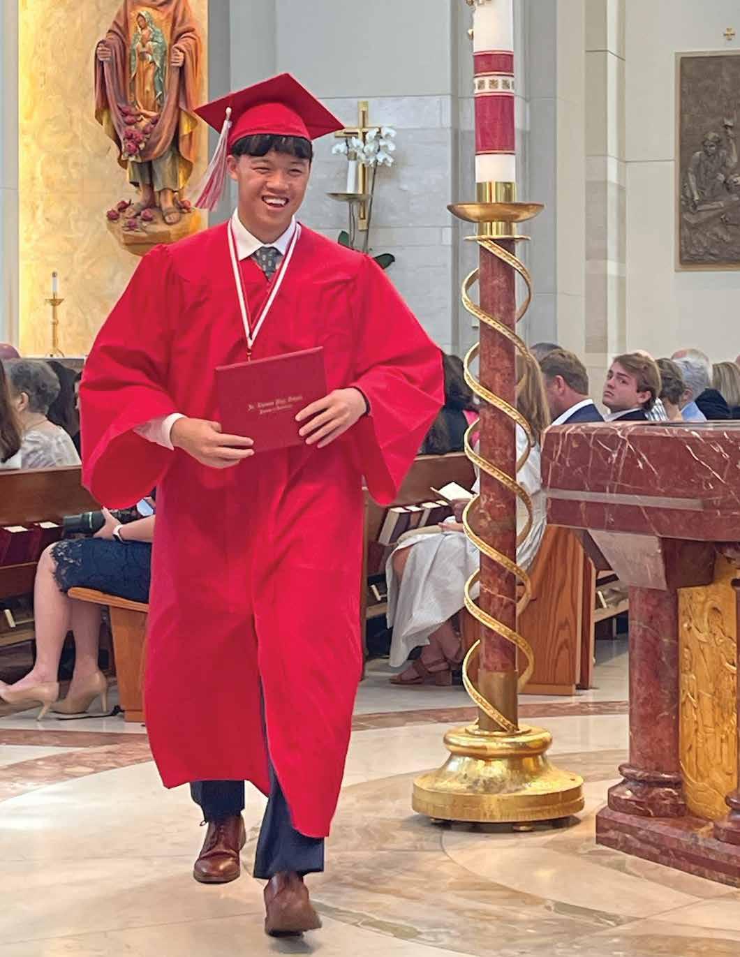 One hundred and forty eight Eagles formed a stream of Red through the Co-Cathedral of the Sacred Heart on May 25. The Class of 2024, embodying the values of Basilian education: goodness, discipline, and knowledge, left the halls of St. Thomas as dignified young men of integrity and grit. The graduating class also received a cumulative $16 million in merit-based scholarships to their colleges and universities.