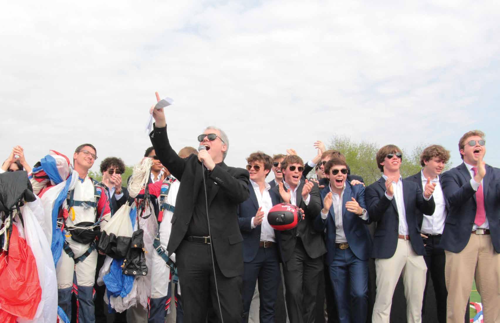 “The skydivers helped tie in the plotline to the theme,” Cummings said. “Every year, the students try to outdo and outperform all of the action from the previous reveal. So, skydivers seemed appropriate, and it had never been done before.”