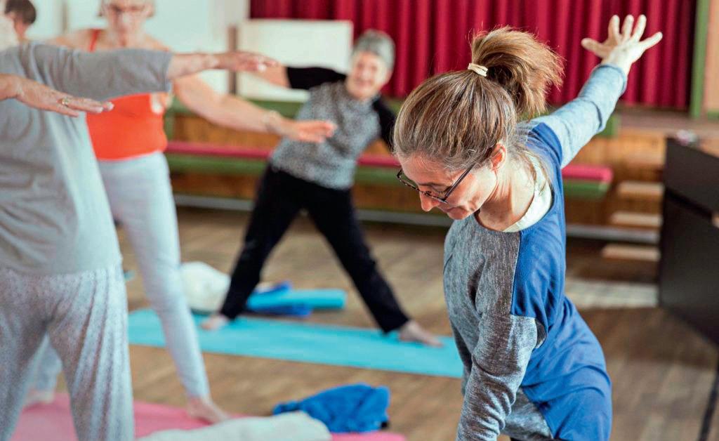Yoga har en tusindårig historie, og har udviklet sig i mange retninger. Her dyrker vi Hatha Yoga i form af traditionelle, enkle yogaøvelser, stående, siddende eller liggende. Det foregår i et roligt tempo, hvor alle kan være med. Målet er ikke kun fysisk velvære, men også at sætte fokus på sammenhængen mellem krop og sind. Der er IKKE krav om smidighed eller fysisk præstation. Det handler i høj grad om at opleve og nyde hvert øjeblik i bevægelse – og om at lytte til kroppens signaler. I samspil med åndedrætsøvelser og afspænding medvirker yogaens øvelser til at opløse psykisk stress og fysiske spændinger. Yoga har mange dokumenteret gavnlige effekter: antistressende, øger koncentrationsevnen, styrker kroppens funktioner, forbedrer nattesøvnen, øger generelt velvære, og giver energi og overskud til hverdagen. Det er en blid form for motion, og der afsluttes hver gang med en afspænding på 10-15 minutter. Løst siddende tøj. Medbring et underlag og evt. et tæppe.