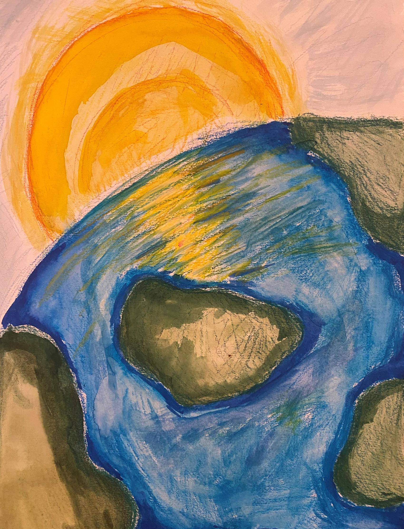 ”Lyset lander på livets kyst”. Tegnet af konfirmand Marie.