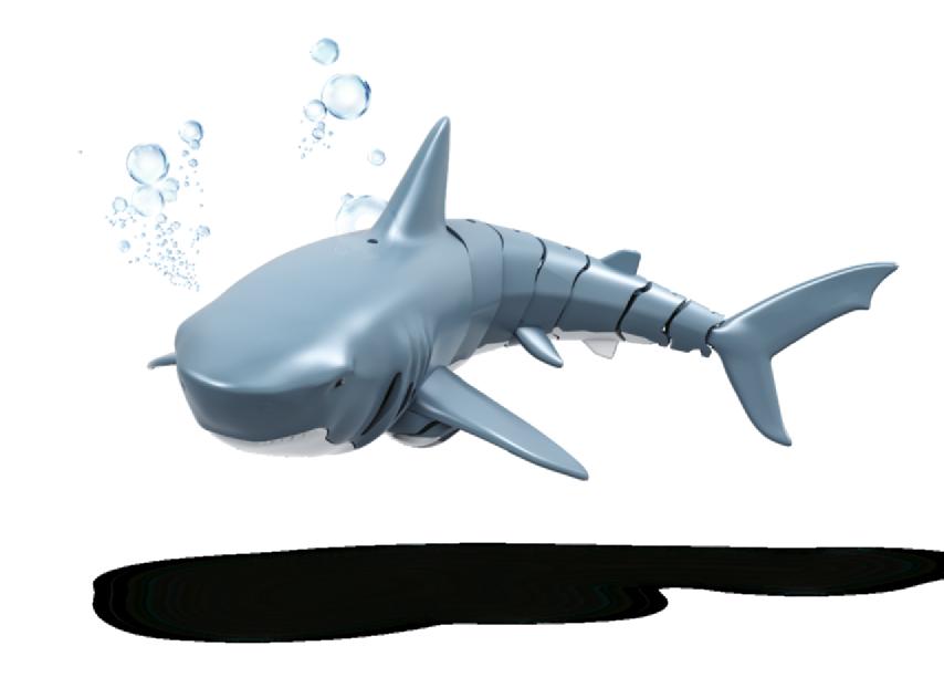 Radiostyret haj Med realistiske svømmebevægelser. Rækkevidde op til 20 meter. Ekskl. 4 stk. AAA-batterier.