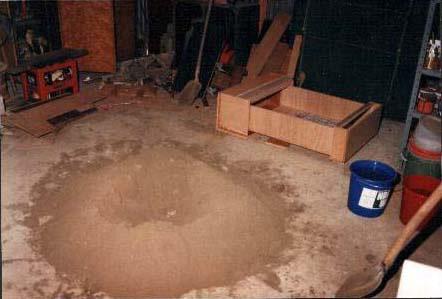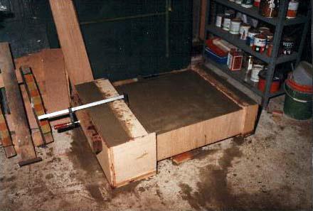 Inmiddels is het gedicht en de mal voor de steen klaar. Alle facetten en de tekst met daarboven een bloemtekening zijn aangebracht. Op een avond daarna wordt, in de schuur van een van de vroegere arbeiderswoningen in de buurt van Urk, Portlandcement vermengd met zand, met een totaalgewicht van 360 kg, in de mal gegoten. In de sokkel van de steen plaatst men een klein filmrolkokertje met daarin een snoepje voor de vinder en een briefje met daarop de beide postcodes van de makers. Met klemmen en banden moet de mal bij elkaar gehouden. Het drogen kan beginnen. Dagen later, komt op een avond de directeur van het Museum Schokland zelf langs om de steen âoudâ te laten lijken. Hij gaat met moker en zoutzuur los op de steen. Tot slot wordt de steen nog âge-