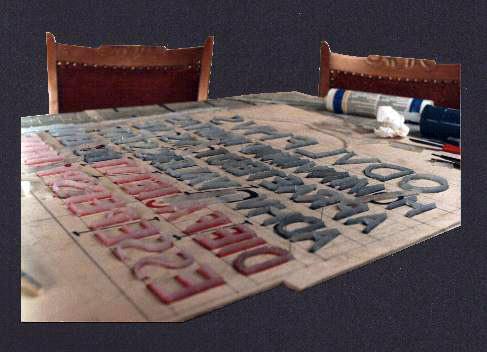 gegoten in hoeklijn, gebogen in de scherpe vorm van Latijnse letters. Een van de twee is beginnend student Theologie en vertaalt het gedicht in het Latijn. Op advies van zijn docent worden kleine wijzigingen aangebracht om het Latijn goed te laten aansluiten bij het jaar 1000.