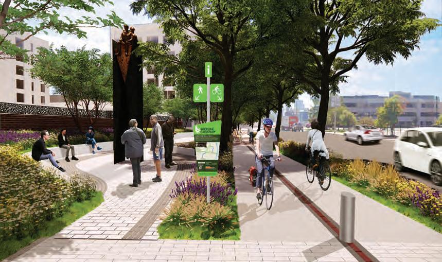 This next stretch of greenway, along Market from 22nd St. to Compton Ave., will make the route safer and link Harris-Stowe State University to CITYPARK, passing many hotels, schools and o ces along the way.