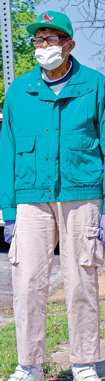 Bruce Thompson practiced good public safety protocol while waiting for the bus in the city’s St. Louis Place neighborhood on Monday, April 20.