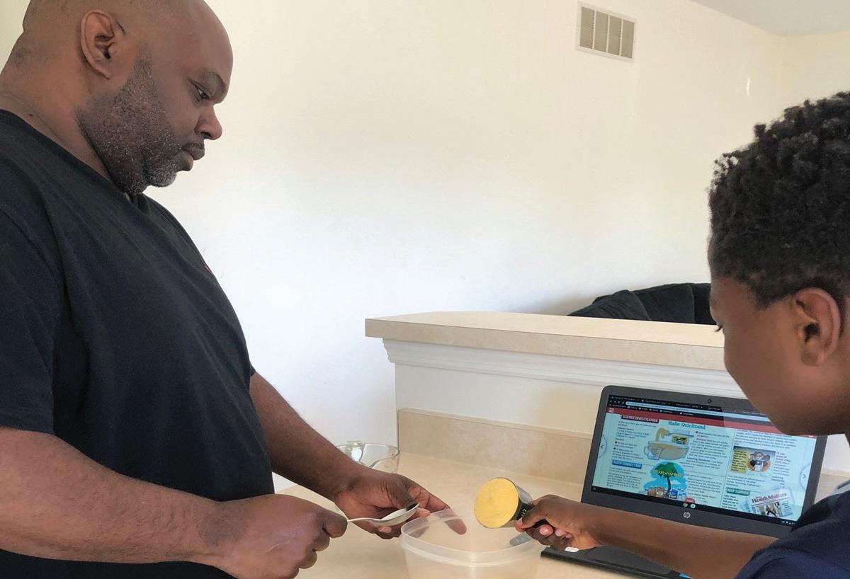 Wellston resident Ashley Franklin taught her son Moquion Franklin how to ride his bike on Monday, April 20. The 6-year-old boy is a student at The Kindergarten Center in the Normandy Schools Collaborative. All public schools in Missouri have shifted to remote learning for the rest of the semester to slow the spread of COVID-19.