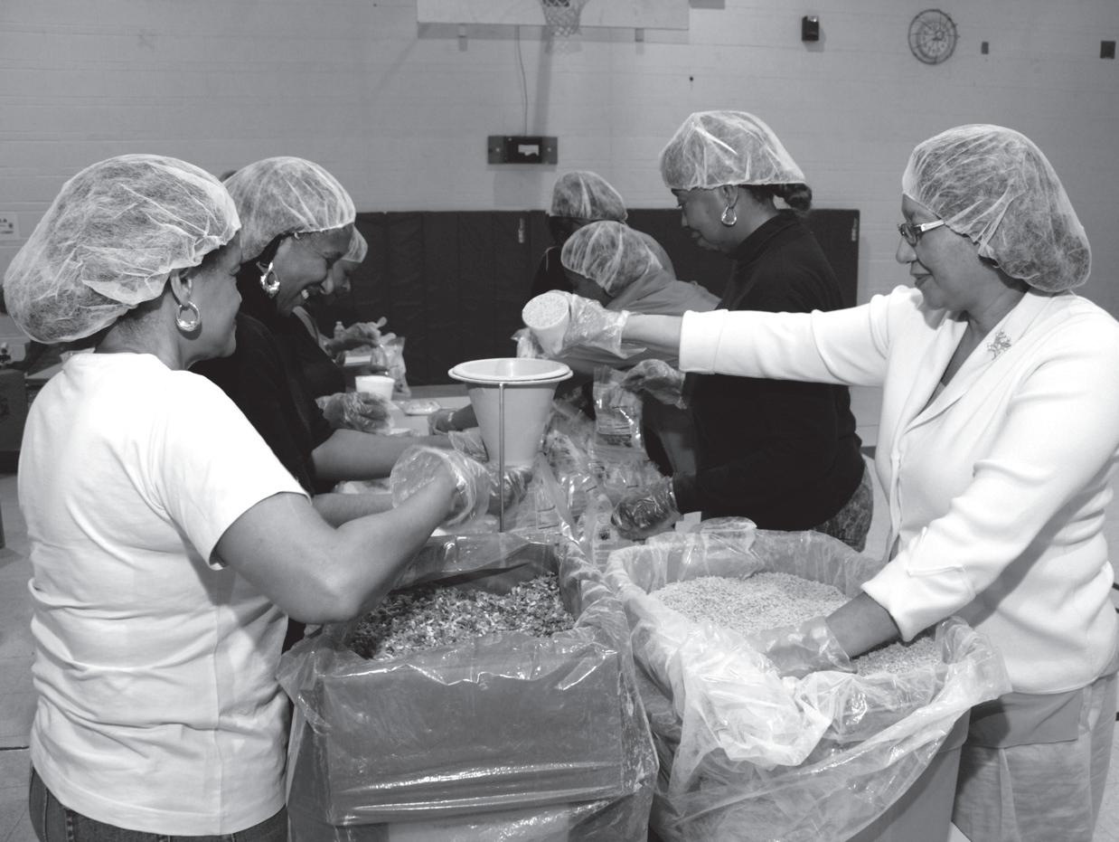 The St. Louis Chapter of The Links, Inc., in partnership with Stop Hunger Now, recently packaged 10,123 dehydrated high protein and highly nutritious meals in three hours at the Creve Coeur Government Gymnasium.