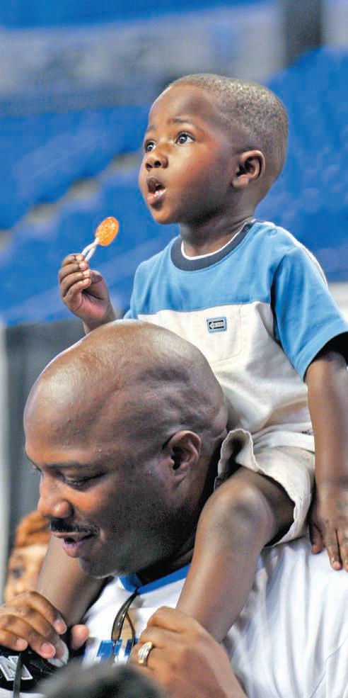 Treven Lawrence,2,takes in the view at the Missouri Black Expo on Saturday during the expo’s first year at the Chaifetz Arena.