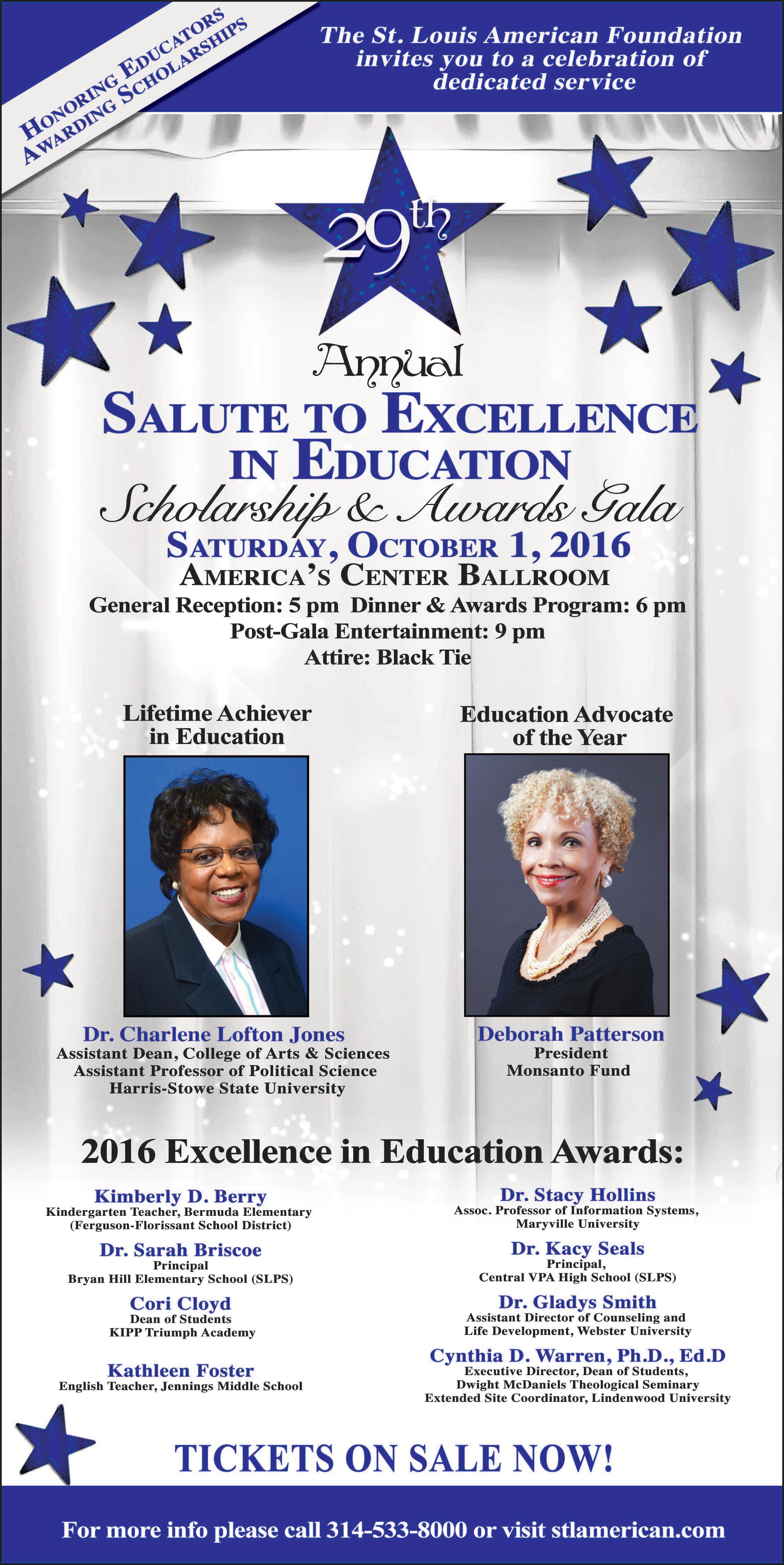 Six weeks until Salute. I just thought I would issue this friendly reminder to have you and by you I mean me put those cheese fries in the garbage disposal if you have any intention of zipping up the back of your gown. That’s right, the 28th Annual Salute to Excellence in Education Scholarship and Awards Gala is right around the corner. The powers that be made the fantabulous decision of moving it to Saturday (October 1) so you don’t have to take a half-day at work to get the level of glamour that our gala requires. I’m already excited – and I have a vision for the look I plan to pull off. Now if I could just stop with these counterproductive food choices I would on task for my preparation activities. Y’all need to get about the business of securing your tickets, because it will sell out. For more information, call (314) 533-8000 or visit www.stlamerican.com.