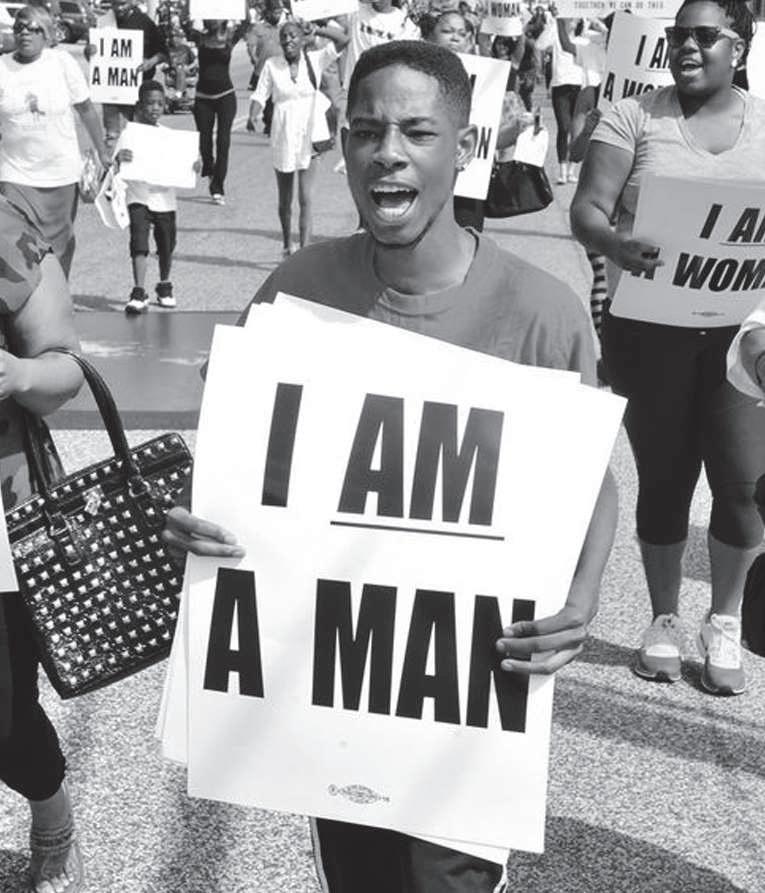 Rasheen Aldridge marching in protest of police shootings near the Ferguson Police Department.