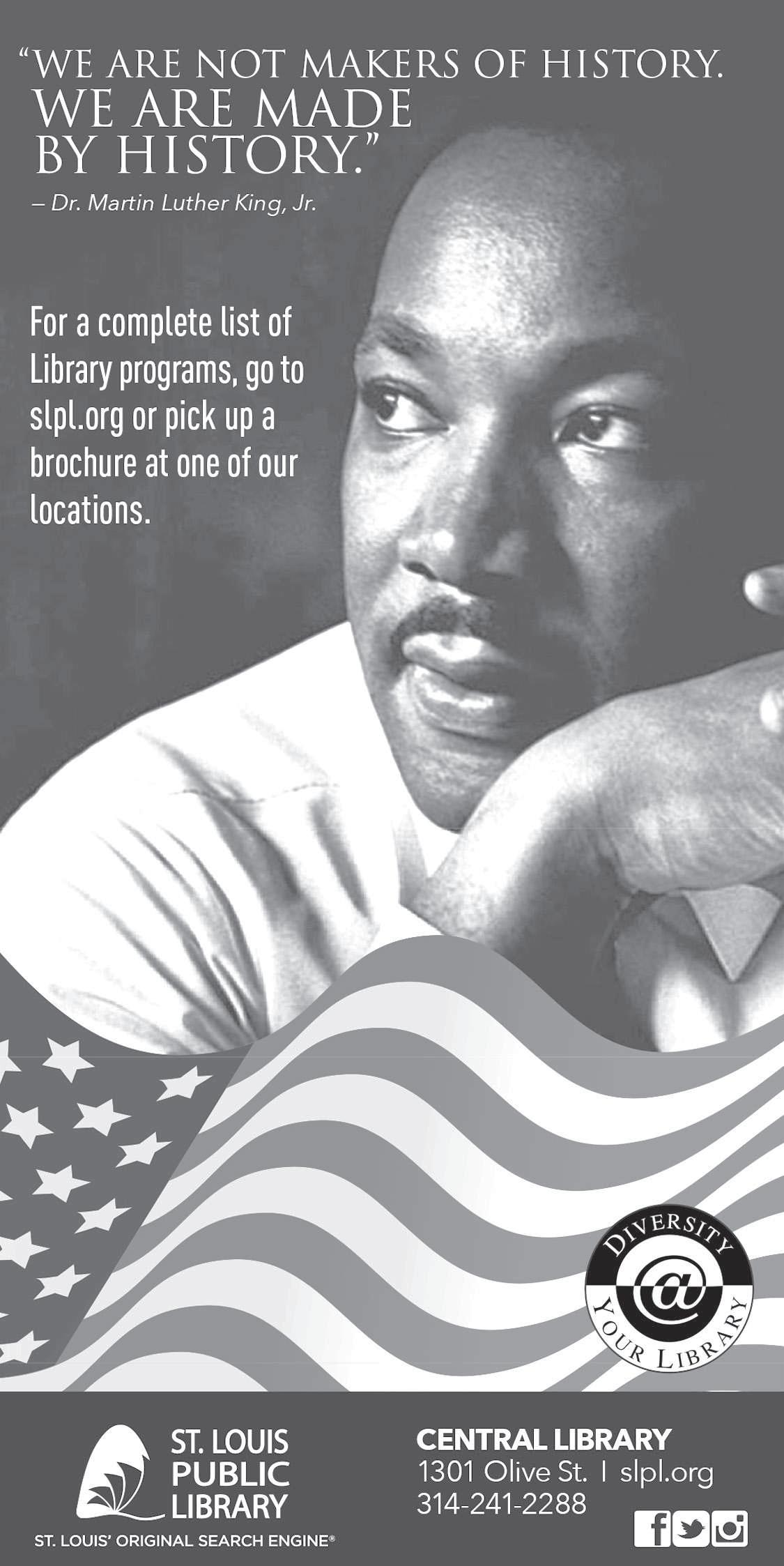 9 – Concordance Academy of Leadership launches an employment agency aiming to connect formerly incarcerated job seekers with St. Louis-area employers. The St. Louis American’s publisher, Donald M. Suggs, accepts the Thomas Jefferson Award from the Missouri Historical Society.
