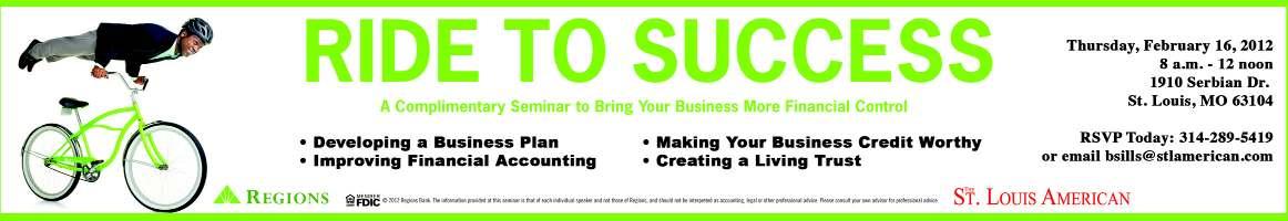 To help business owners gain more control and balance over their companies’ finances, Regions Bank and The St. Louis American are presenting Ride to Success. This complimentary seminar will provide information on a variety of topics to help you achieve more financial control than ever before, including: