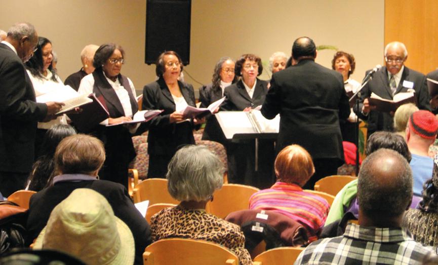 The program Chairs Miriam Wilhelm and Neil Westbrooks designed a program which included congregants participating in African Drumming led by Sky Kingsland, who leads the University City drumming circle; reflections on the King Memorial in Washington, D.C. from four individuals who have recently seen it; musical selections from the Cote Brilliante Presbyterian Church Choir and the Central Reform Congregation Band; and a classical piano solo by 16-year-old AfricanAmerican University City high school student Khalid McGhee, who received a standing ovation. He is a part of Mark Sarich’s Orchestra of Diversity.