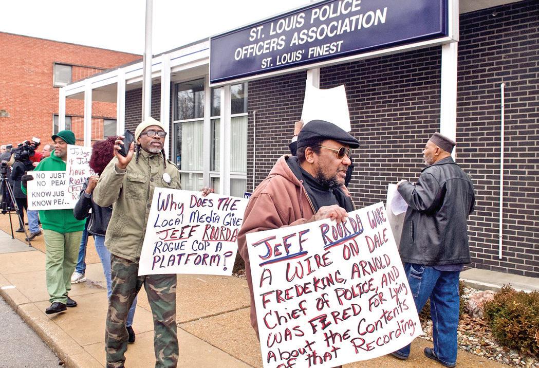 The Justice Coalition protested at the St. Louis Police Officers Association office at 3017 Hampton Ave. on Monday, February 17, demanding the removal of Jeff Roodra, its business agent and spokesman. Roorda has publicly called for St. Louis Circuit Attorney Kimberly Gardner to be removed from office “by force or by choice.”